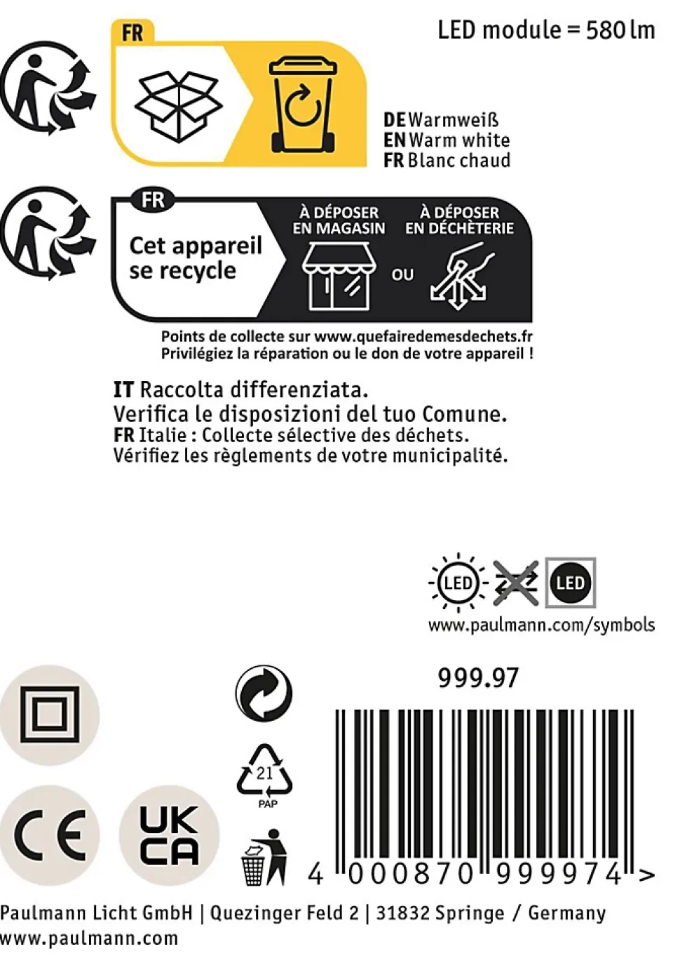 - Indice de protection IP20, conçu pour usage intérieur dans salon, cuisine, bureau ou chambre.