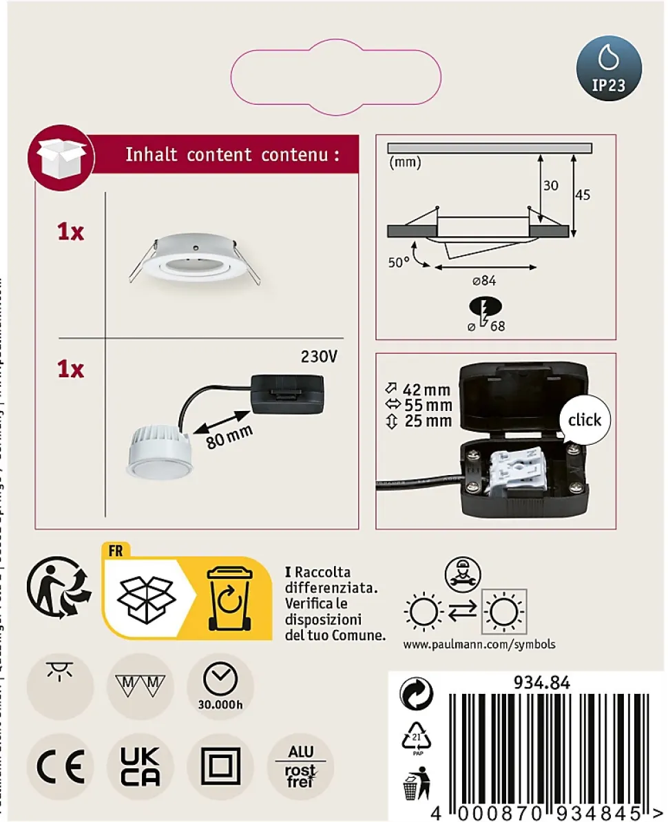 - Indice de protection IP23, adapté aux zones intérieures comme cuisine et salle de bain.