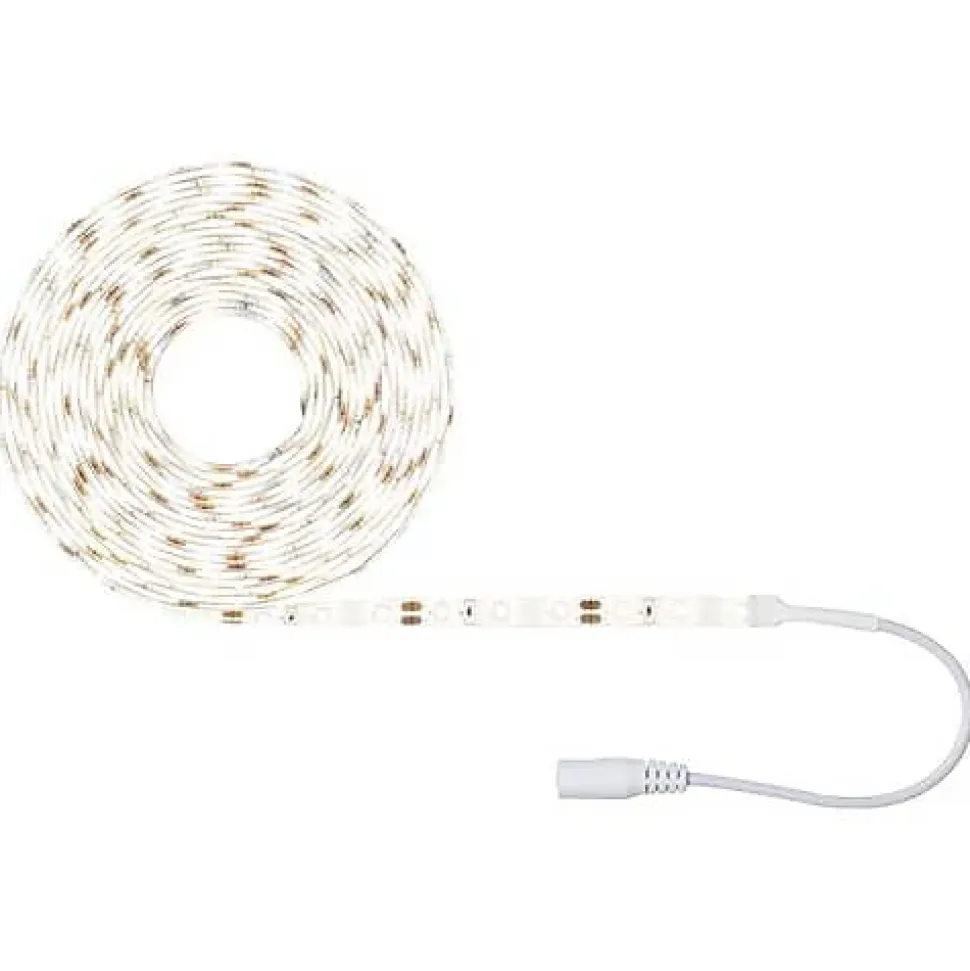 Kit complet Paulmann SimpLED 78972, ruban LED 5 m blanc chaud 3000 K, flux total 1500 lm (300 lm/m), puissance 17 W, tension 12 V. Livré prêt à l’emploi avec alimentation 230/12V, câble d’alimentation et prise secteur. Ruban flexible et autocollant pour un montage sur surfaces planes ou courbes, coupable aux repères pour ajuster la longueur. Revêtement protecteur contre la poussière et les projections d’eau, indice de rendu des couleurs Ra 80, indice de protection IP20. Non extensible et non compatible avec les bandes YourLED et MaxLED. Matériaux : métal, plastique; classe de protection II; applications intérieures. Contenu du pack : set complet bandeau LED et notice d’utilisation.