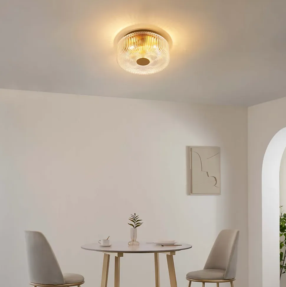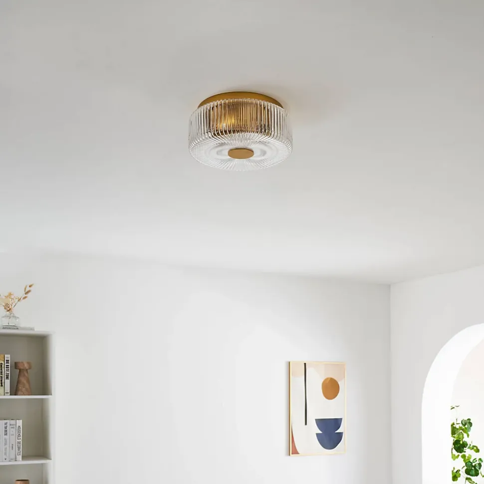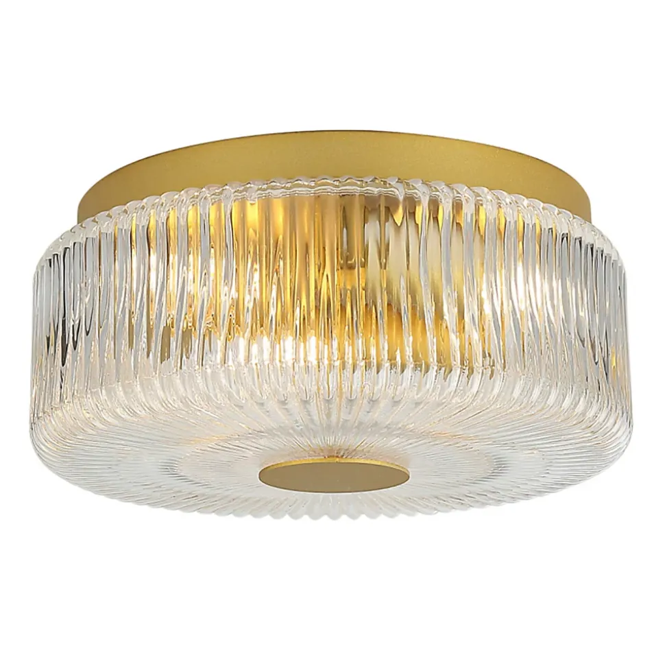 Le luminaire Paolina est un modèle compact et polyvalent qui fonctionne aussi bien comme petit spot au plafond qu’en applique murale. Avec un diamètre de 30 cm et une hauteur de 13 cm, il est parfait pour les espaces alliant élégance et fonctionnalité. Son socle doré ajoute une touche de luxe subtil, tandis que l’abat-jour en verre transparent apporte une sensation de légèreté. Il dispose d’un emplacement pour 3 ampoules E27, où vous pouvez opter pour des LED classiques ou des LED à filament pour un style rétro. Lorsqu’il est allumé, Paolina offre un éclairage puissant et décoratif, et ses petits reliefs en verre diffusent la lumière en charmants reflets sur les murs.) Assemblage simple requis (
