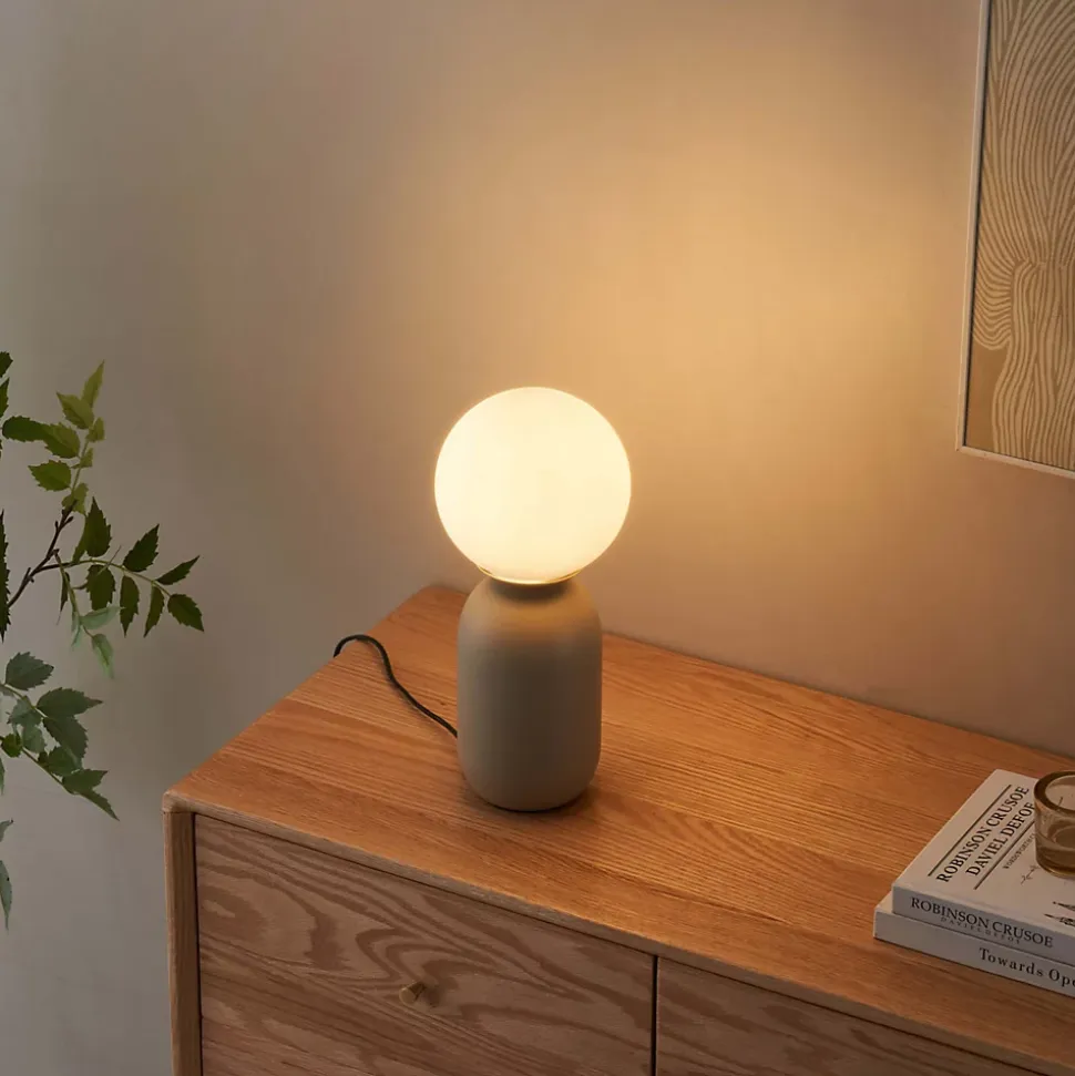 La lampe à poser Sley, dans un élégant coloris taupe, incarne un design moderne et pop, alliant audace et simplicité. Parfaite pour apporter une lumière douce et tendance, elle s’adapte parfaitement à une table de chevet, une console ou un bureau. Sley ajoute une touche ludique et fonctionnelle à votre intérieur, captivant par son mélange harmonieux de formes et de teintes.) Assemblage simple requis (