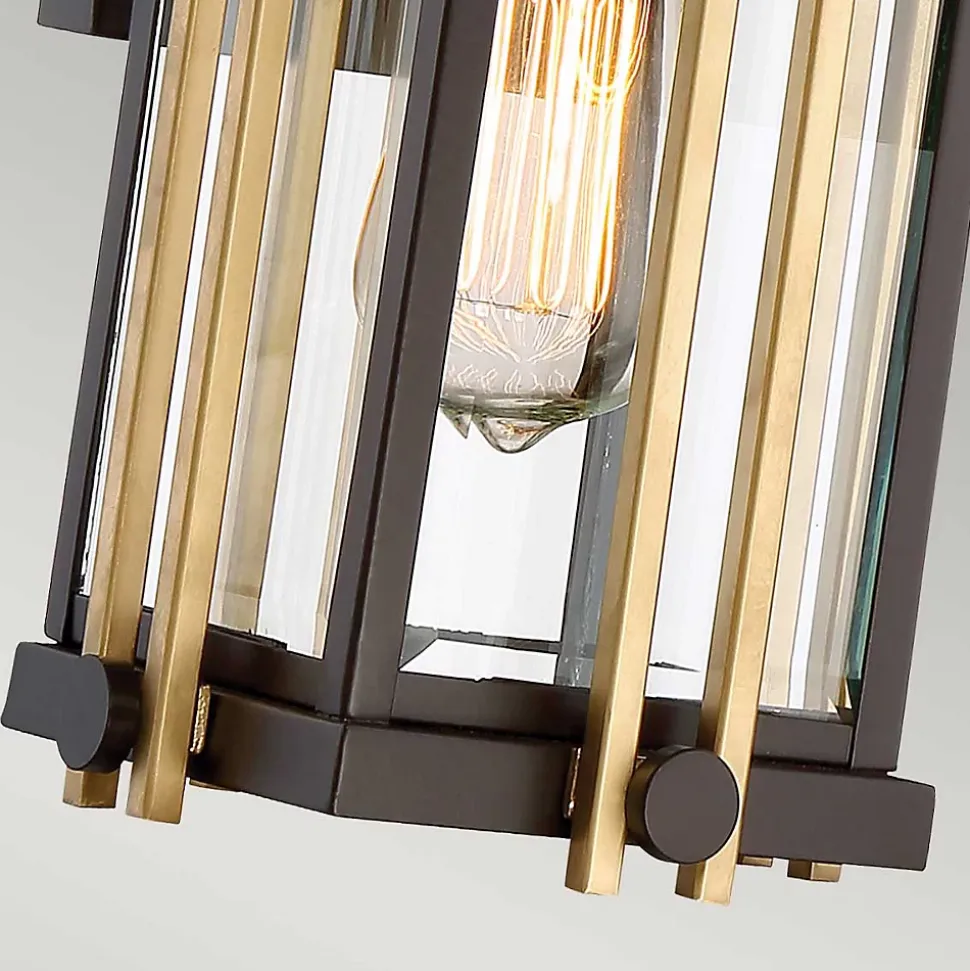 Du milieu du siècle à la maison d’aujourd’hui, la série Goldenrod pour l’extérieur est à la fois intrigante et classique. La riche finition bronze occidental de la base est accentuée par des bandes de métal peintes en or lustré. Les panneaux de verre clair biseautés s’inscrivent dans le cadre du décor général. Veuillez noter que les tiges dorées peuvent être retirées pour simplifier le design, ou recolorées par l’utilisateur final pour créer d’autres looks.