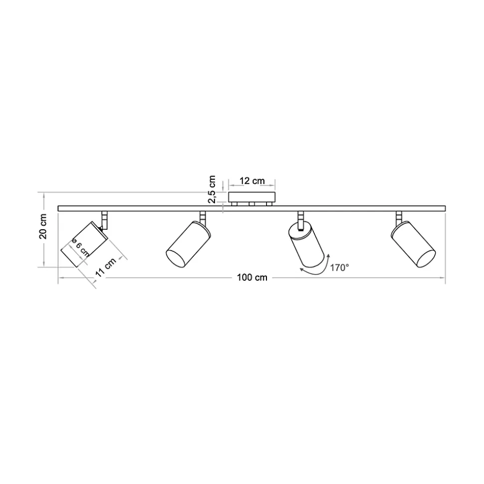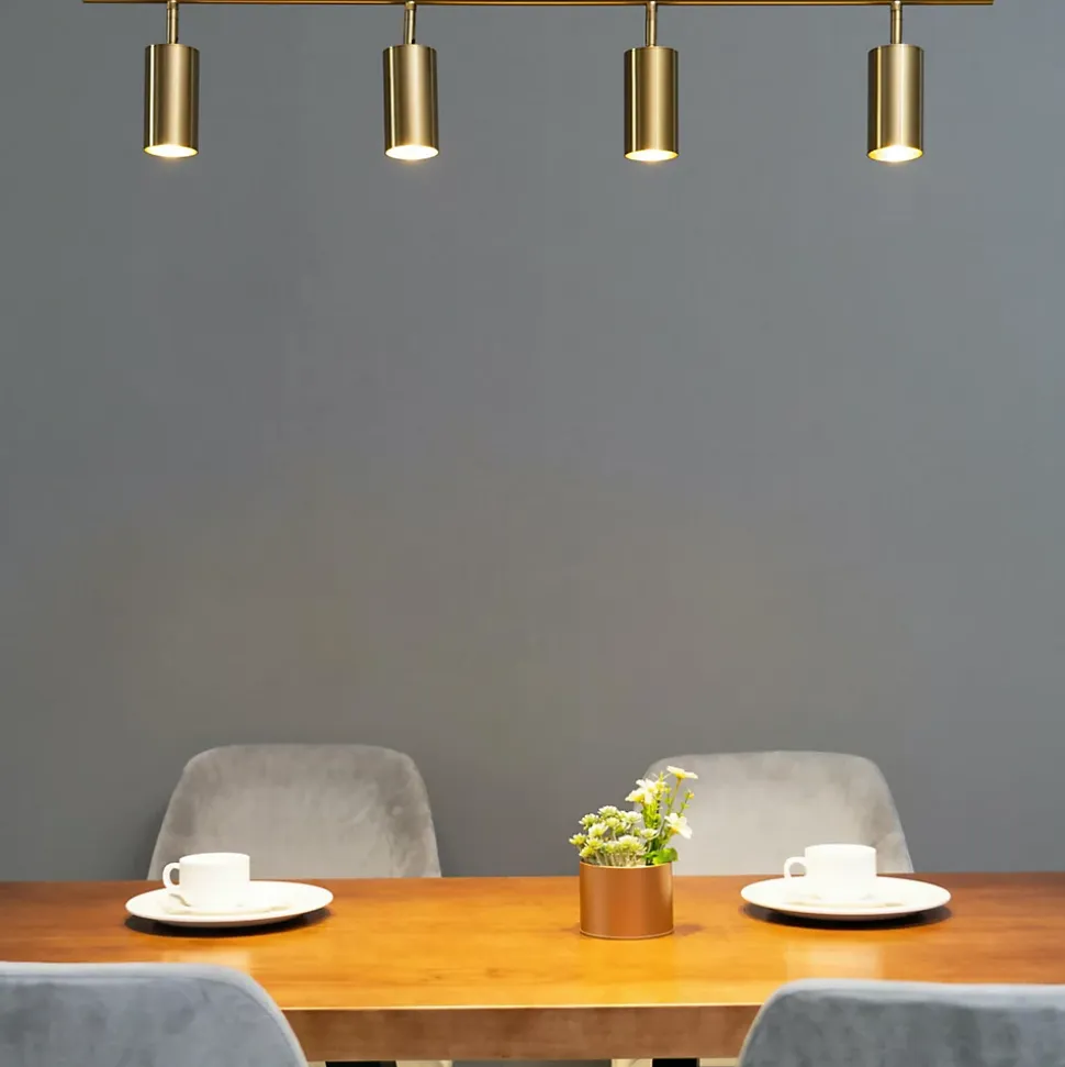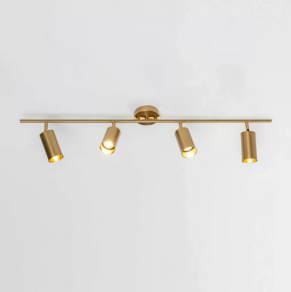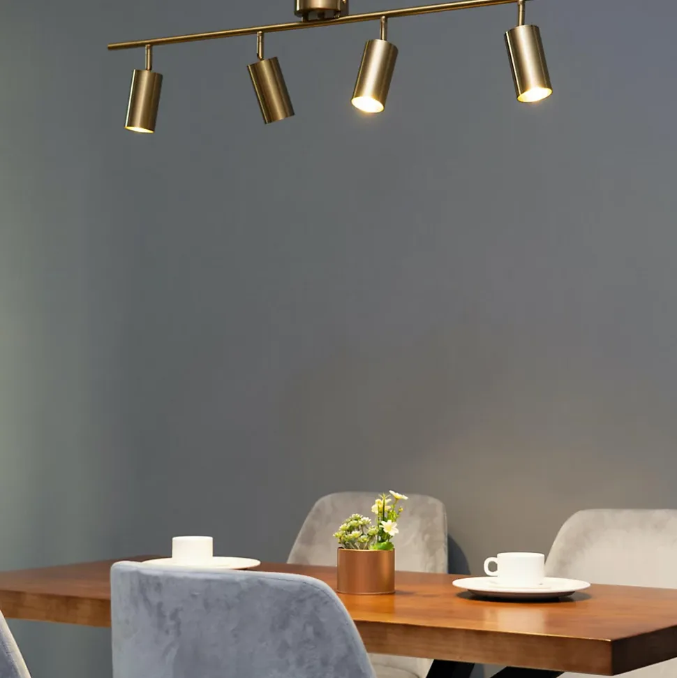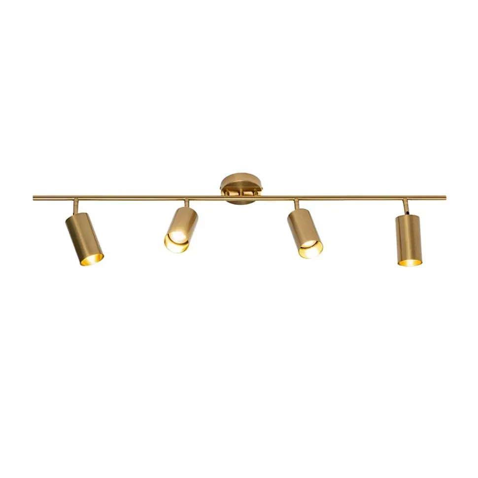 Transformez votre espace avec le plafonnier à spots multiples Estrid en métal et aluminium couleur laiton. Idéal pour éclairer cuisine, couloir ou surface de travail, ce luminaire moderne de 1 mètre de long sur 20 cm de hauteur utilise 4 ampoules GU10. Son design sobre s’adapte facilement à tout intérieur. Les têtes orientables le long de la barre centrale assurent une répartition harmonieuse de la lumière, créant un jeu d’ombres captivant. Compact et discret, Estrid maintient la lumière proche du plafond.) Assemblage simple requis (