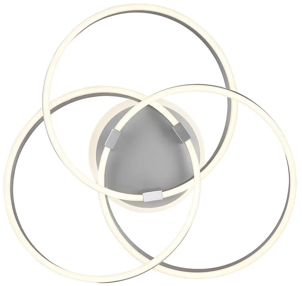Plafonnier aluminium brossé, métal gris mat, Acrylique opale, satiné, Dimmable, Plusieurs intensités à gérer par un interrupteur mural, couleur fixe, Fonction de mémoire, Veilleuse, Télécommande, Batterie incluse 2x AAA, LxPxH: 600x575x200mm, incl. LED 56W 230V, 688-6893lm Source, 485-4751lm Output, CCT 2700-6000K