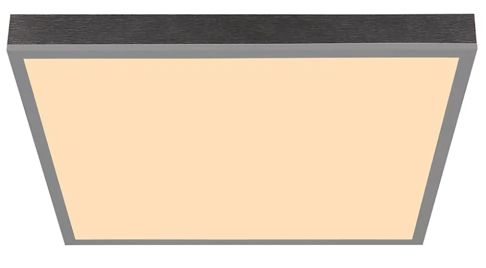 Plafonnier aluminium couleur argent, MDF gris foncé, plastique opale, LxPxH: 450x450x65mm, incl. LED 24W 230V, 2500lm Source, 1200lm Output, 3000K
