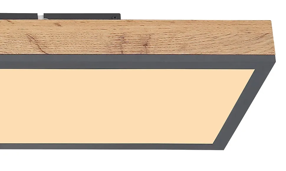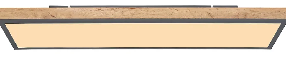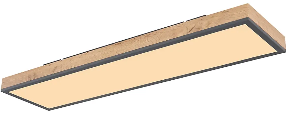 Plafonnier aluminium graphite, MDF décor bois, Acrylique opale, LxPxH: 800x200x65mm, incl. LED 24W 230V, 2500lm Source, 1500lm Output, 3000K