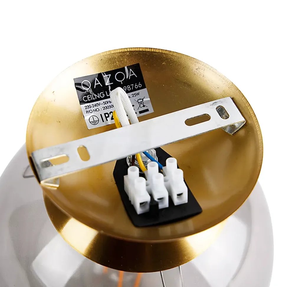 Le Pallon est un luminaire unique en son genre : la couleur laiton du verre combinée au verre fumé en fait un véritable chef-d’œuvre ! La boule en verre a un diamètre de 20 cm et une hauteur de 23 cm. La plaque de montage pour le plafond a un diamètre de 12 cm. Vous pouvez la compléter avec une ampoule d’une puissance maximale de 25 watts (grande douille E27). C’est donc une véritable lampe d’ambiance ! Elle est également compatible avec un variateur d’intensité (non inclus). Le luminaire peut être suspendu dans un salon ou une chambre à coucher, par exemple. C’est là qu’il s’exprimera vraiment !