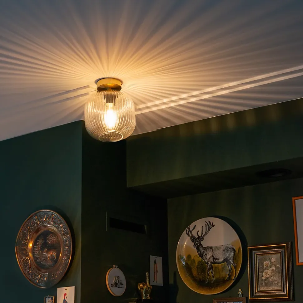 Ce magnifique plafonnier est fini en laiton avec du verre clair nervuré. Le design excentrique de Karel vole la vedette dans n’importe quelle pièce de la maison ! Le verre nervuré diffuse une lumière douce dans votre salon ou votre chambre à coucher. Ce Karel peut également être utilisé parfaitement comme éclairage de base dans votre couloir ou dans votre cuisine. La lampe a un diamètre de 20 cm et une hauteur de 23 cm. La plaque de montage a un diamètre de 10 cm. Utilisez une ampoule E27 frappante d’une puissance maximale de 25 watts. Veuillez noter : cette ampoule n’est pas incluse et doit être commandée séparément ! Elle est dimmable avec un variateur externe (non inclus). Le nec plus ultra en matière d’investissement, notre plafonnier Karel !