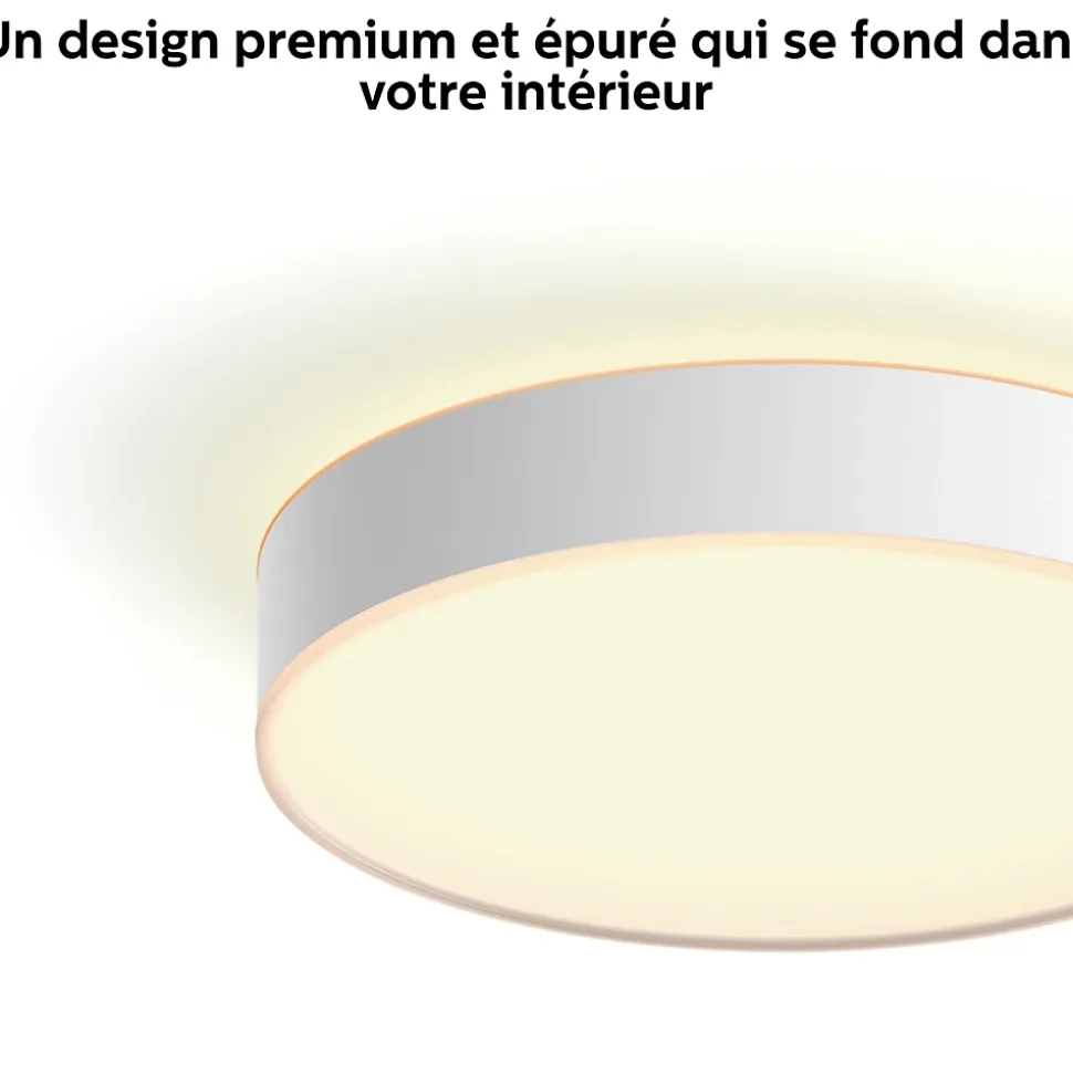 Profitez d’un éclairage naturel et parfaitement adapté à chaque moment de la journée grâce à ce luminaire Philips Hue livré avec sa télécommande. En plus de son design élégant, il vous permet de régler facilement l’intensité lumineuse pour obtenir un éclairage toujours équilibré, ni trop fort ni trop faible. Sa température de couleur variable vous offre tous les bienfaits de la lumière blanche : une lumière froide, intense et légèrement bleutée le matin pour stimuler l’énergie, favoriser le réveil et la concentration, et une lumière chaude aux tons jaune orangé en fin de journée, idéale pour se détendre et préparer l’organisme au sommeil. Prêt à l’emploi, ce luminaire est entièrement compatible avec l’écosystème Philips Hue. En ajoutant le pont de connexion (vendu séparément), vous pouvez contrôler votre éclairage depuis votre smartphone et accéder à encore plus de fonctionnalités pour personnaliser votre ambiance au quotidien.