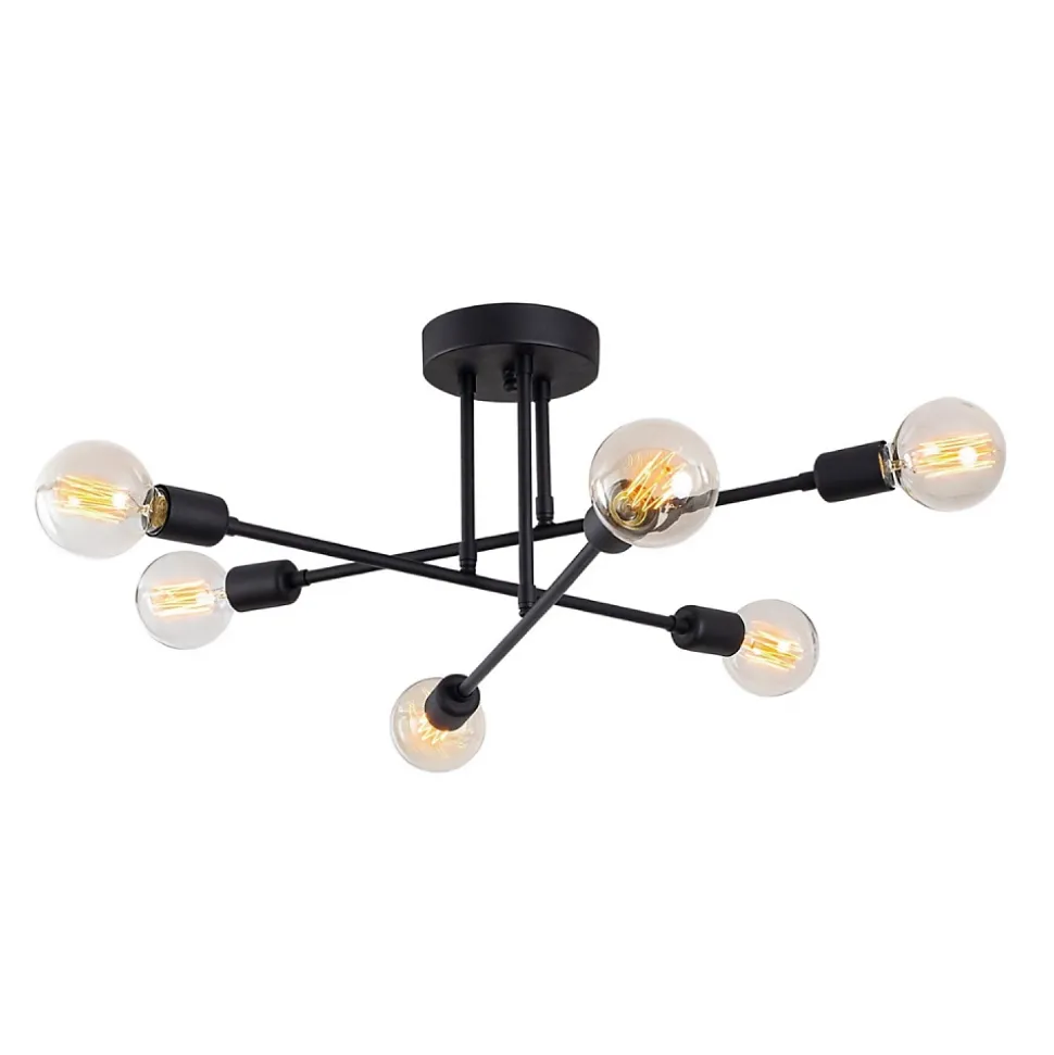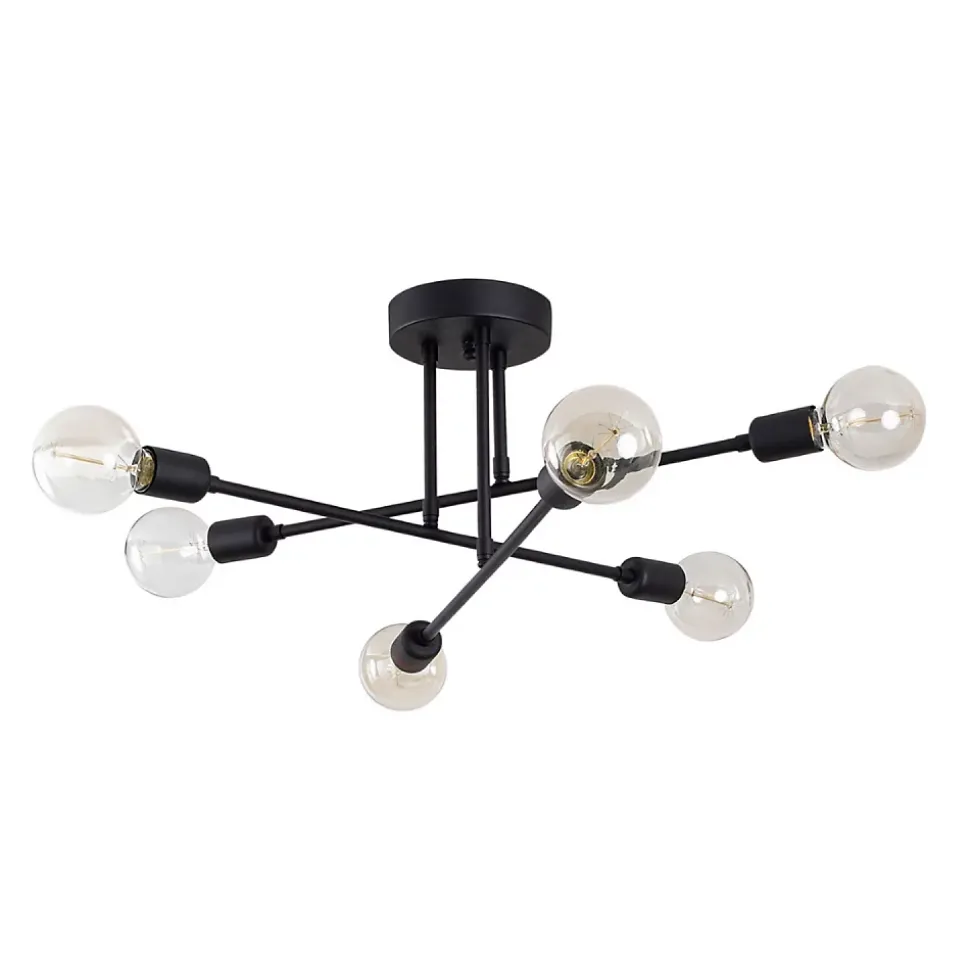 Lustre croisé en fer noirDécorez votre intérieur avec ce joli lustre croisé en fer noir. Sa matière originale offrira une touche de modernité à votre salon. Votre pièce sera parfaitement décorée et illuminée grâce aux 6 sources de lumière présentes sur cette suspension.Caractéristiques techniques Couleur principale : Noir Matière : Fer Nombre d’ampoules : 6 Puissance : 40W maximum Type d’usage : Intérieur Ampoule incluse : NonEntretienNettoyage facile à l’aide d’un chiffon humide.Dimensions Dimensions totales : 64 x 64 x 30 cm Poids total : 2 kgConditionnementLe produit est conditionné dans un colis de : 33 x 71 x 20 cm / 2 kg