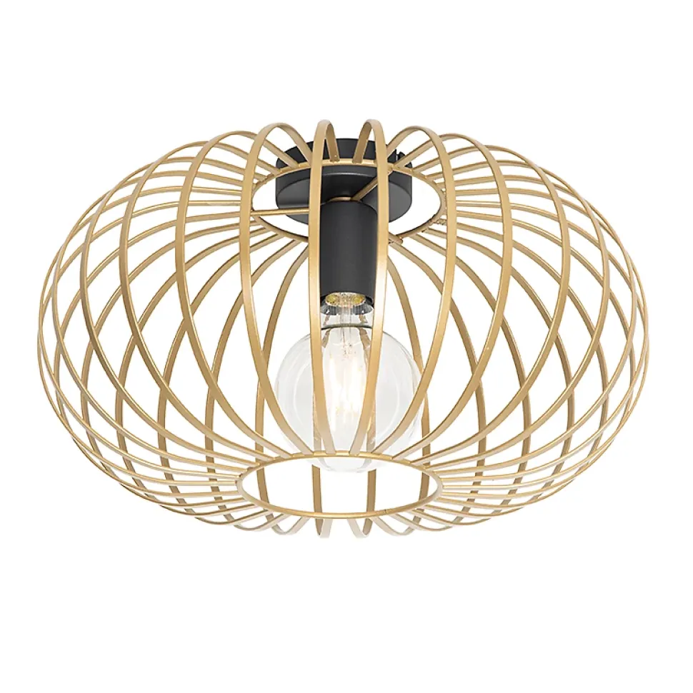 Votre intérieur a besoin d’un plafonnier élégant ? Johanna est fait pour vous ! Ses barres en acier laiton créent un magnifique effet lumineux sur le mur. La combinaison de noir et de laiton apporte également une touche moderne à votre intérieur. Son diamètre est de 39 cm et sa hauteur de 22 cm. La plaque de montage mesure 9 cm de diamètre et 2,5 cm de hauteur. L’abat-jour a un diamètre de 39 cm et une hauteur de 19,5 cm. Vous pouvez compléter le plafonnier avec une ampoule à culot E27 (40W maximum). N’oubliez pas de la commander séparément. Choisissez une ampoule qui soit également esthétique, car elle est bien visible dans le luminaire. Le plafonnier peut également être atténué à l’aide d’un variateur externe (non inclus). Johanna est un magnifique plafonnier design pour le salon, le couloir ou la chambre à coucher. Ajoutez plus d’ambiance à votre intérieur avec ce magnifique plafonnier !