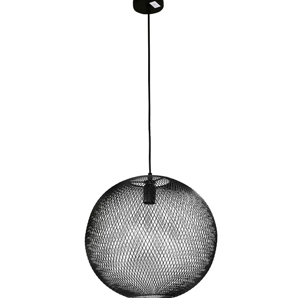 Plafonnier rond noir mat ajouré, diamètre 40 cm, hauteur réglable et structure en métal robuste; crée une lumière chaleureuse et des jeux d’ombres décoratifs. Ampoule E27 non incluse.