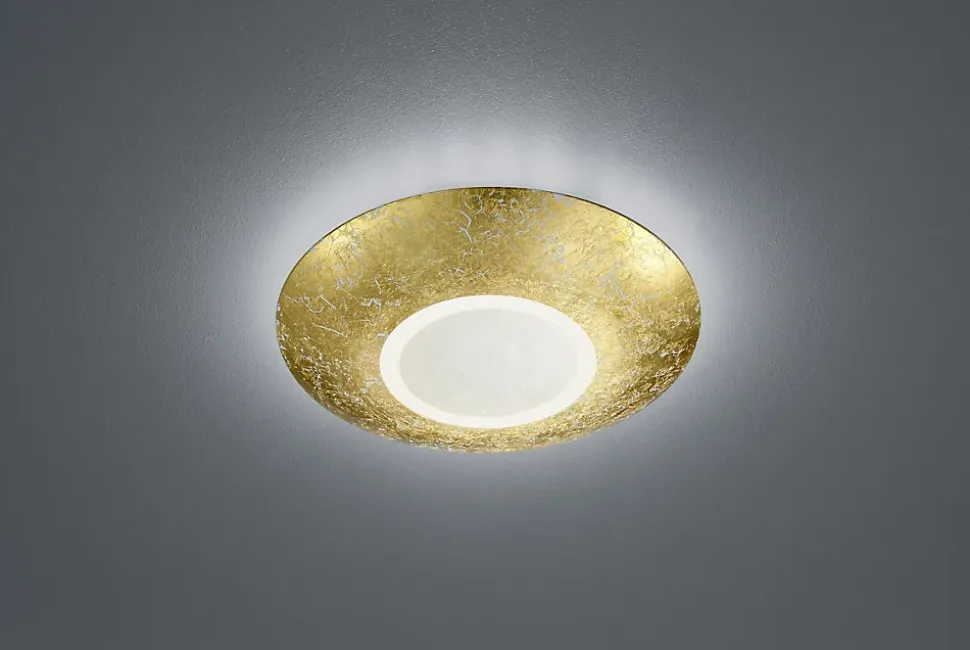 Plafonnier design Chiros de Trio.Existe en or, cuivre et argent.Dimension:6 cm de haut32 cm de diamètreAmpoules LED incluses