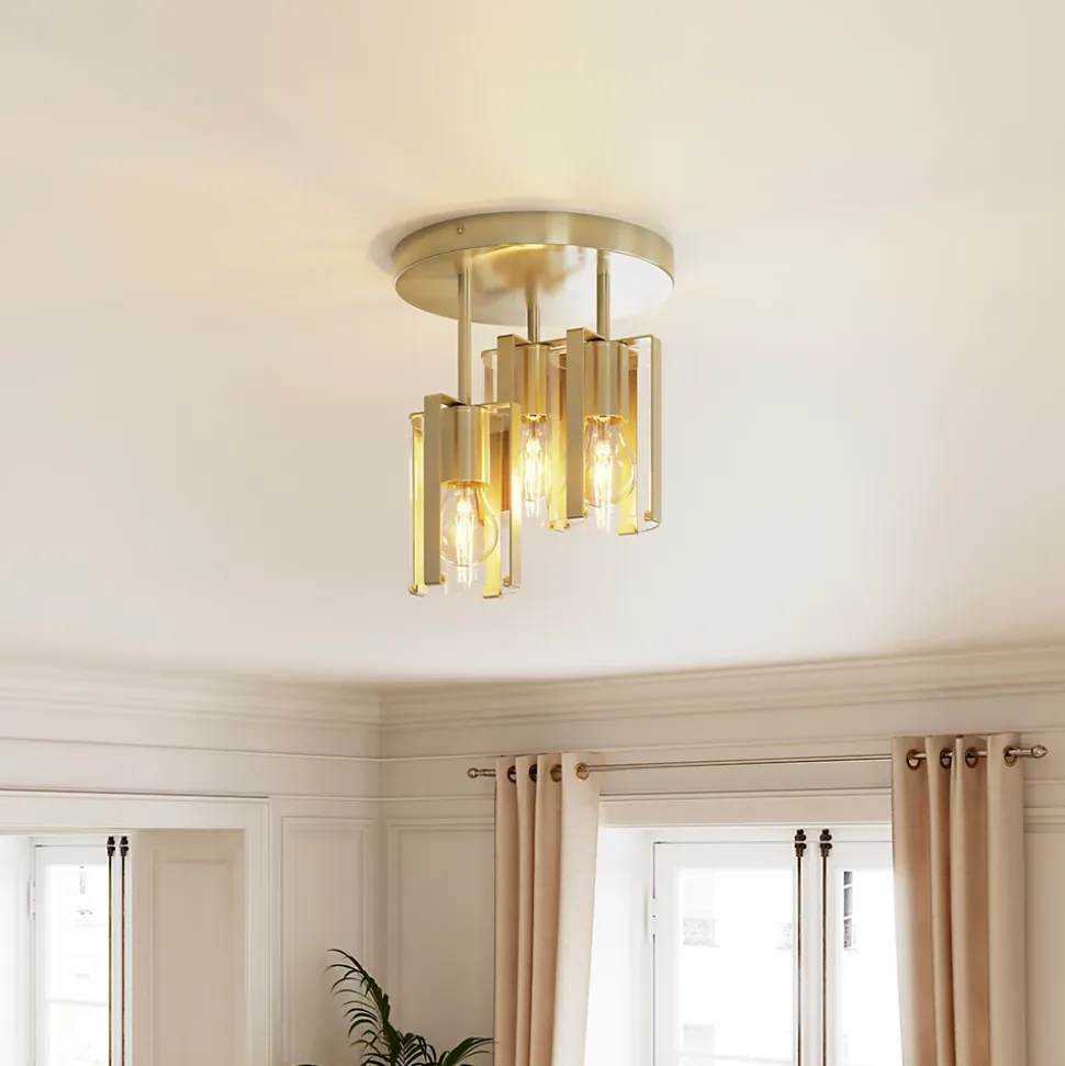 Plafonnier E27 42W GoodHome Saiphi effet laiton H.30 x Ø25 cm