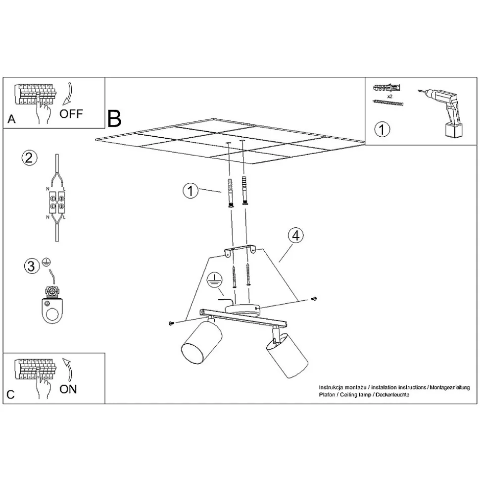 - Source lumineuse : GU10, 2x LED max 10W, ~230V, 50Hz, IP20, classe de protection I