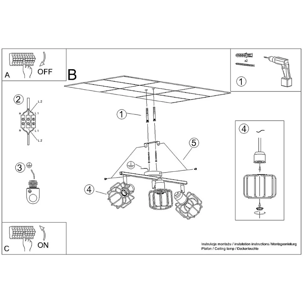 - Source lumineuse : E14, 3x max 10 W LED, ~230V, 50Hz, IP20, classe de protection I.