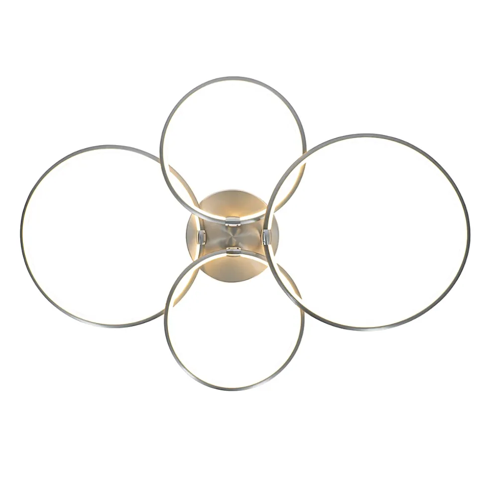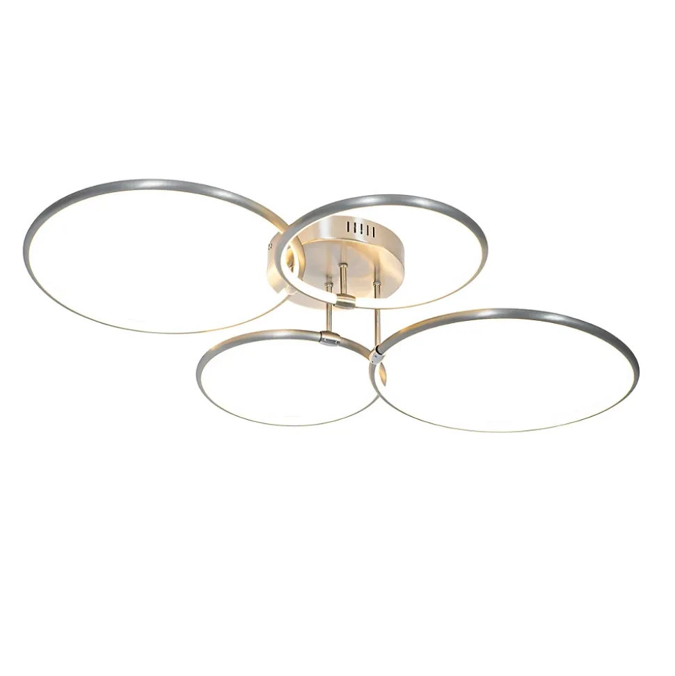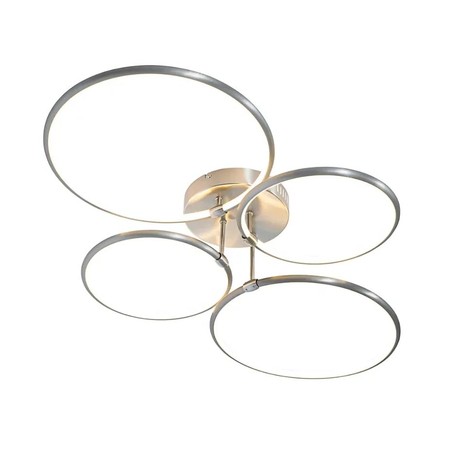 Le plafonnier Joaniqa est vraiment cool ! Il s’intègre parfaitement à un intérieur moderne. Fabriqué en acier, il est doté d’une finition couleur acier. Avec ses 4 points lumineux, il attire tous les regards. Le plafonnier est équipé d’un éclairage LED non remplaçable. En moyenne, les LED ont une durée de vie de 30 000 heures de combustion. Le plafonnier consomme 80 watts. Avec un rendement lumineux élevé pouvant atteindre 2 600 lumens, le plafonnier est adapté à un éclairage fonctionnel. Ce plafonnier est à intensité variable 3 niveaux. Vous pouvez ainsi déterminer vous-même l’intensité lumineuse. Le Joaniqa peut être atténué de 30 % pour un éclairage d’ambiance à 100 % pour un éclairage fonctionnel. Avec le Joaniqa, vous avez toujours la bonne lumière chez vous !