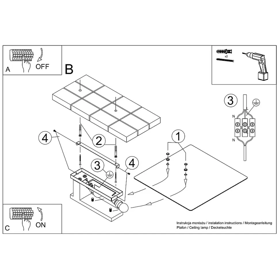 - E27, 2x LED max 15W, ~230V, 50Hz, IP20, classe de protection I
