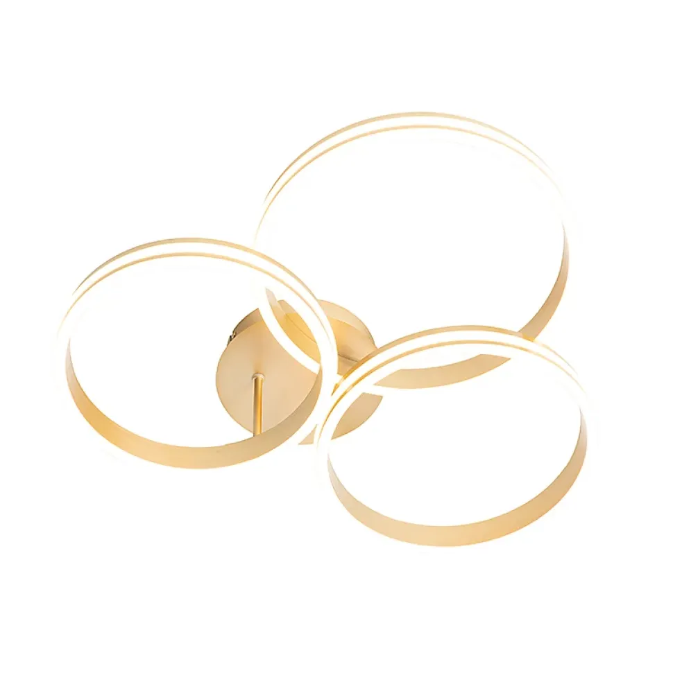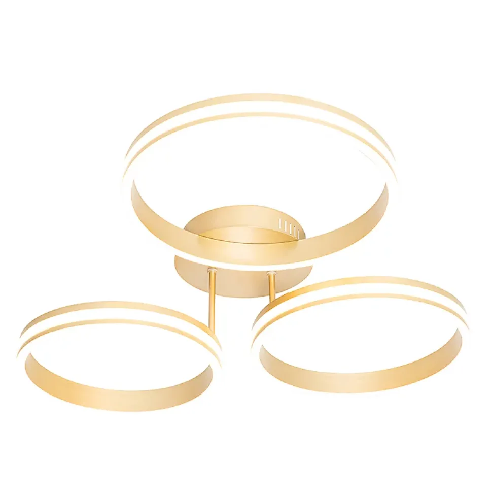 Votre intérieur a besoin d’un peu de design ? Alors le plafonnier Navara est fait pour vous ! Ces trois cercles lumineux garantissent une agréable diffusion de la lumière. Le luminaire est fabriqué en aluminium, plastique et acier. Sa finition dorée lui donne un look moderne ! Navara a un diamètre de 74 cm et une hauteur de 18 cm. La plaque de montage a un diamètre de 20 cm et une hauteur de 4 cm. Navara est équipé d’un éclairage LED non remplaçable. Sa puissance lumineuse est de 1 920 lumens et sa température de couleur de 2 700 kelvins, ce qui signifie que le luminaire dégage beaucoup de lumière ! Heureusement, il est doté de 3 niveaux de luminosité, que vous pouvez régler à l’aide de votre interrupteur mural. Vous aurez ainsi toujours l’atmosphère idéale dans la pièce. Navara est parfait pour un bureau, une salle à manger ou un couloir. Navara est le plafonnier que vous recherchez !