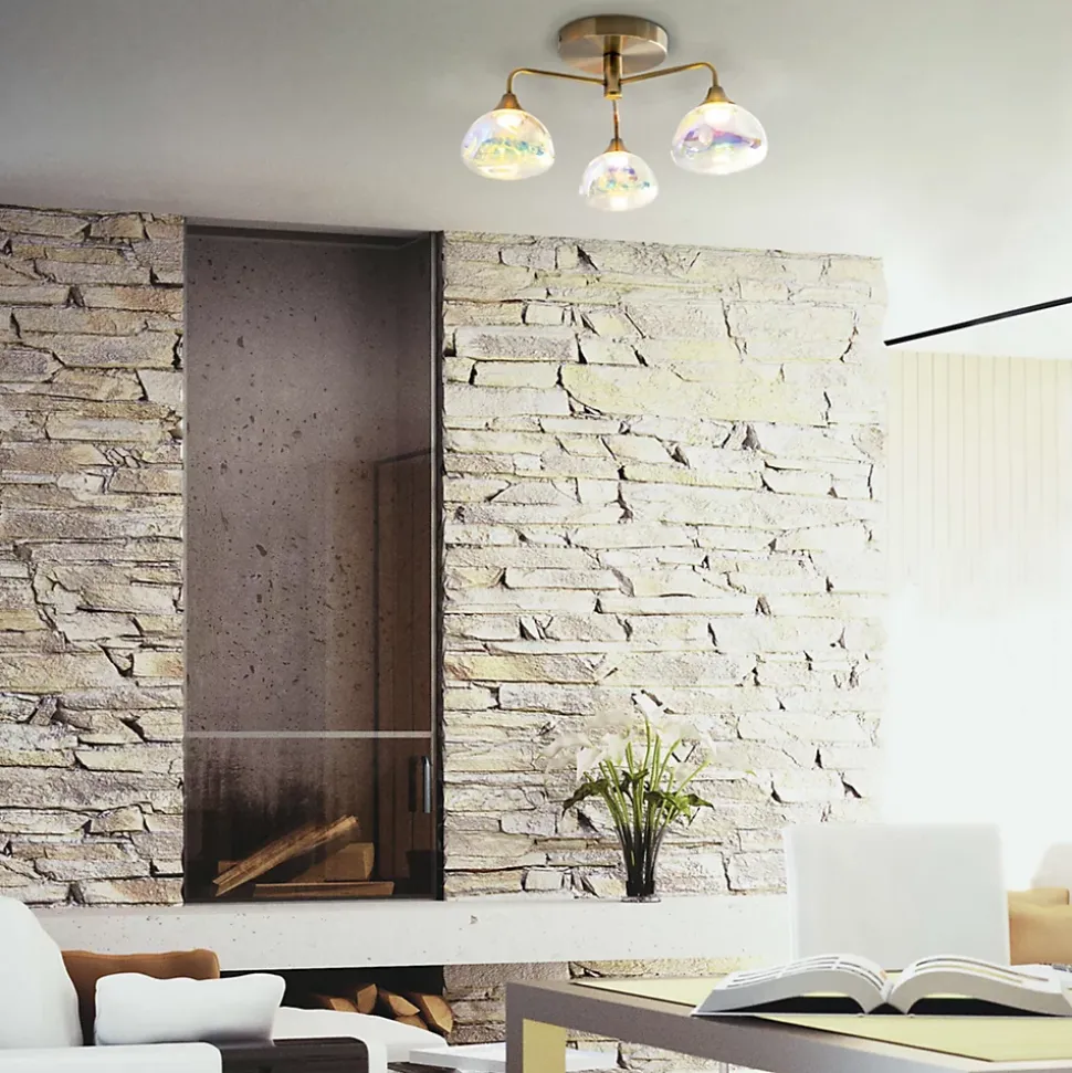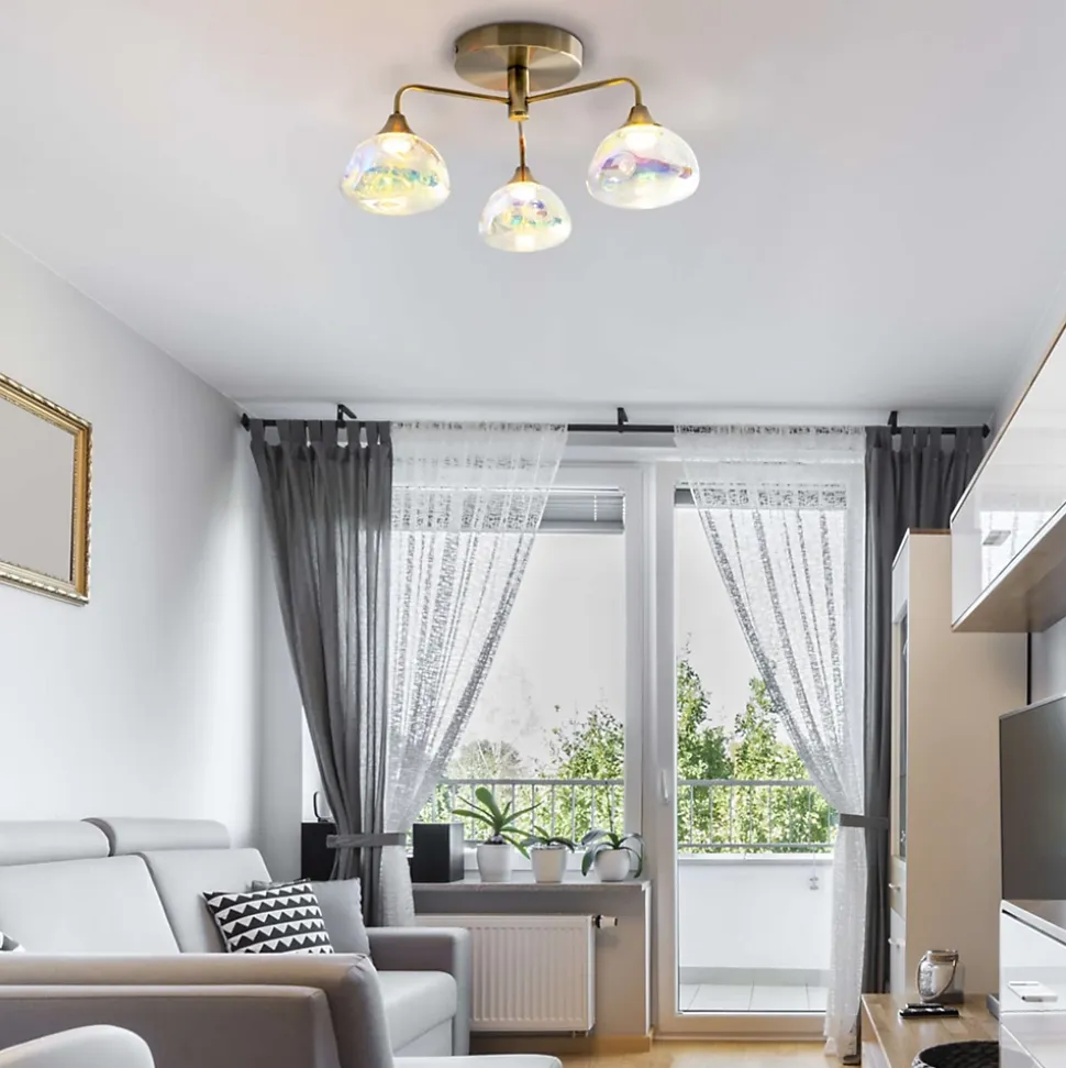 Le plafonnier VARNA de notre collection est un véritable accroche-regard pour chaque espace de vie. Les plafonniers sont optimaux pour éclairer une pièce de manière uniforme. Ils offrent une large diffusion de la lumière, qui atteint chaque coin de la pièce, et créent ainsi une atmosphère lumineuse et accueillante. Le look de ce luminaire de style vintage est habilement souligné par son design arrondi. Parfait pour tous ceux qui aiment les choses attrayantes et raffinées ! Avec son design en métal et en verre en laiton, ce luminaire attire particulièrement l’attention. Le plafonnier a un diamètre de 42 cm et une hauteur de 19,5 cm. Avec lui, vous disposez d’une possibilité d’éclairage élégante pour vos pièces d’habitation. Avec une platine équipée de 3 LED, la lumière se fait dans l’obscurité. Et ce, d’une manière très attrayante. L’éclairage est entièrement intégré dans le design. Ce luminaire correspond à la classe 1. Pour le fonctionnement sur secteur de cet appareil, une tension de réseau de 220-240V ~ 50Hz est nécessaire. Le luminaire de 27 watts a une intensité lumineuse de 1650 lumens et une température de lumière de 2700 kelvins. Apportez une ambiance chaleureuse et agréable dans vos pièces avec notre plafonnier de première classe et vivez l’éclairage dans sa plus belle forme.