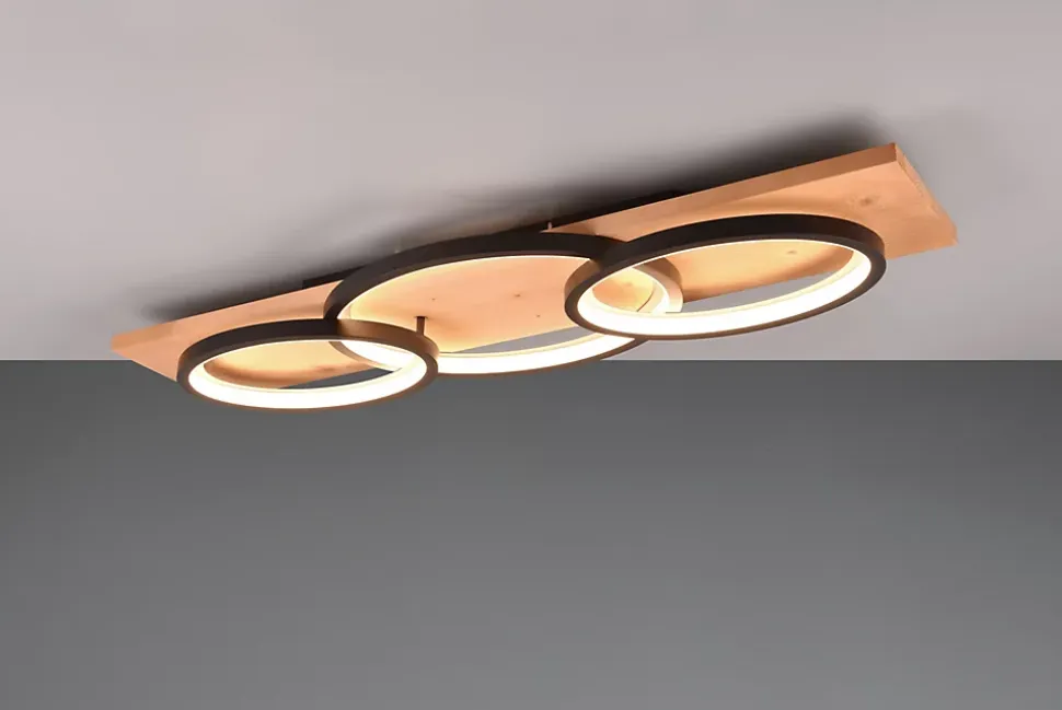 Les caractéristiques techniquesLe plafonnier LED Barca de la marque Trio combine un design moderne et épuré avec un éclairage de haute qualité. Son design géométrique utilise des formes épurées pour créer un effet lumineux agréable sur toute la surface.Le plafonnier offre une lumière indirecte qui, associée à un cadre en bois naturel, crée une atmosphère chaleureuse et apaisante dans votre intérieur.Le luminaire est équipé d’un variateur SWITCH intégré, permettant de régler la luminosité sur trois niveaux (100 %, 50 %, 25 %) avec un interrupteur classique pour s’adapter à toutes les ambiances.Flexible et facile à installer, il peut être monté au plafond ou au mur, offrant ainsi de nombreuses possibilités d’application dans vos espaces de vie.Les avantages esthétiques et fonctionnelsCe plafonnier moderne est fabriqué en métal de qualité et dispose d’une finition en noir mat avec des accents en bois naturel, un choix parfait pour une décoration moderne et conviviale.Équipé de la technologie LED moderne, il permet de réaliser des économies d’énergie allant jusqu’à 80 % par rapport aux lampes halogènes traditionnelles, tout en offrant une lumière de haute qualité et une longue durée de vie.