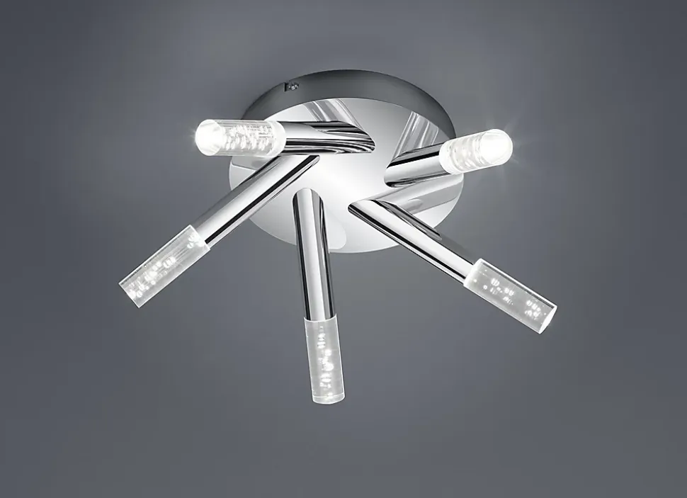 Un plafonnier design pour sublimer votre salle de bainsLe plafonnier BOLSA de TRIO allie élégance et performance. Sa forme ronde associée à un effet « bulle » original crée un véritable élément de décoration. Idéal pour la salle de bains, il apporte une touche de modernité tout en assurant un éclairage agréable.Conçu pour les environnements humidesGrâce à son indice de protection IP44, BOLSA est parfaitement adapté aux pièces d’eau : salle de bains, buanderie, toilettes, etc. Résistant à l’humidité et aux éclaboussures, il allie esthétique et fiabilité au quotidien.Un éclairage LED performant et économiqueLe plafonnier est équipé de 5 modules LED intégrés de 3,1W chacun, offrant une luminosité totale de 1550 lumens avec une teinte chaude de 3000 K. Ce type d’éclairage est à la fois énergétiquement efficace et durable : jusqu’à 50 000 heures de fonctionnement !Un look chic et raffinéLa finition chromée du corps en métal se marie parfaitement avec les diffuseurs en acrylique transparent, pour un rendu lumineux et épuré. Avec ses 41 cm de diamètre, il s’impose discrètement comme un élément déco à part entière.Facile à installer et sécuriséMonté directement au plafond, ce luminaire fonctionne sur le secteur 230V et possède un degré de protection classe II. Il ne nécessite aucun entretien particulier, et ses LED intégrées ne sont pas remplaçables, ce qui évite toute manipulation technique.