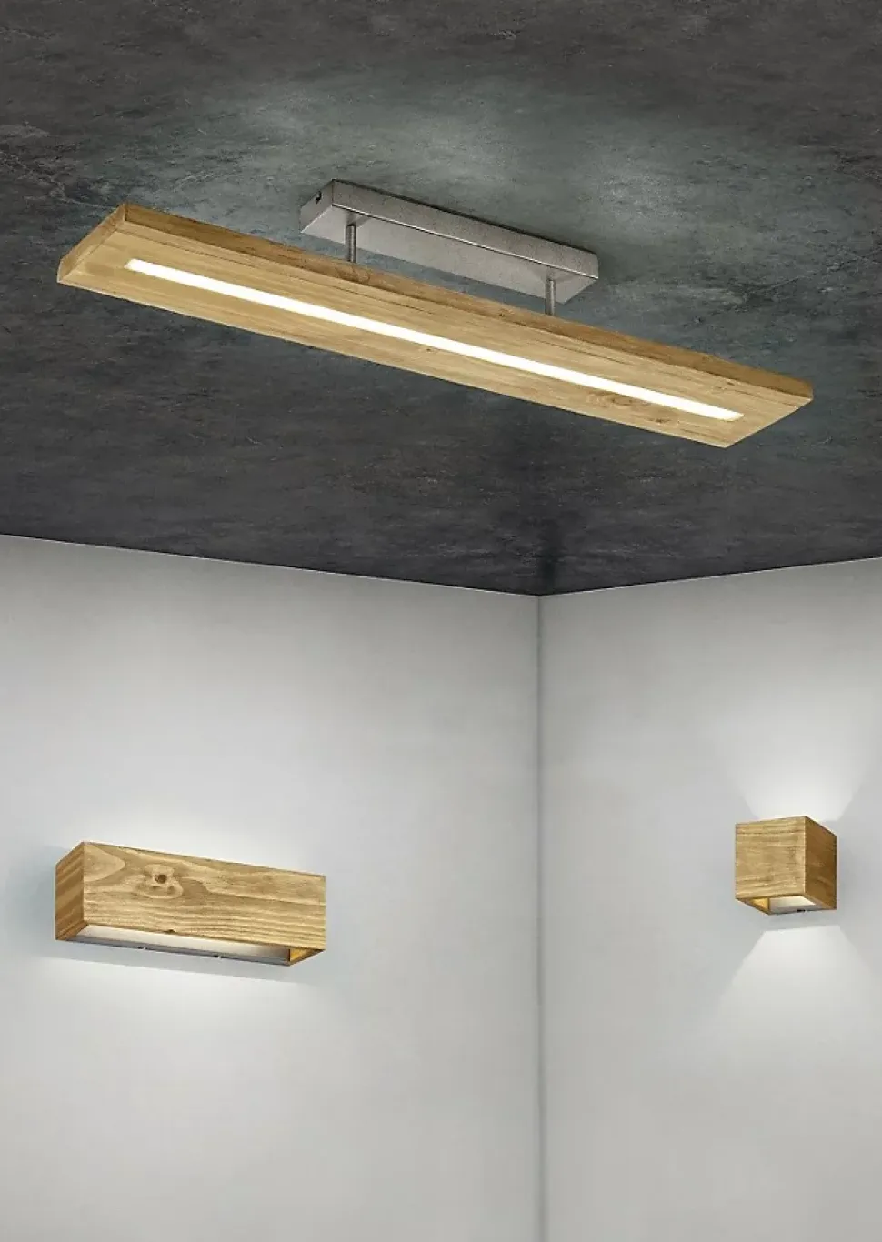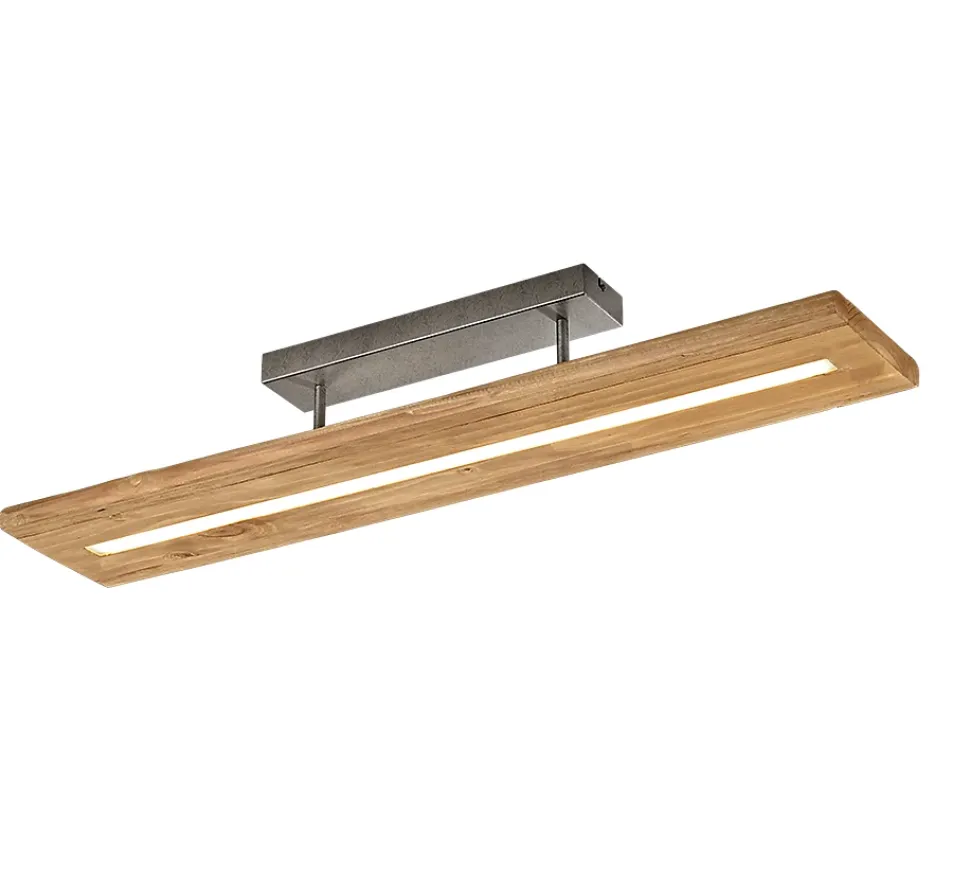 Les caractéristiques techniquesChaleur et modernité sont au rendez-vous avec le plafonnier LED Brad . Ce luminaire de TRIO associe bois naturel et métal finition nickel antique pour un style raffiné qui sublime vos pièces à vivre.Avec sa belle puissance lumineuse de 3400 lumens (27W) en blanc chaud (3000K), il est parfait pour éclairer le salon, la chambre ou le couloir. Ce plafonnier d’une largeur de 100 cm et d’une hauteur de 16,7 cm s’intègre parfaitement dans les intérieurs contemporains ou vintage.Sa technologie LED moderne garantit une lumière de haute qualité tout en offrant une durée de vie de 30 000 heures et une réduction des coûts énergétiques allant jusqu’à 80 % par rapport à l’halogène.Les avantages esthétiques BRAD séduit par son design chaleureux : la combinaison du bois naturel et du métal crée une ambiance cosy et élégante. Idéal comme pièce maîtresse dans votre décoration intérieure, il attire le regard tout en assurant un éclairage homogène et puissant.Facile à intégrer, ce plafonnier non dimmable bénéficie d’une fonction mémoire et peut être ajusté via son interrupteur. Le choix parfait pour allier esthétique, fonctionnalité et économie d’énergie dans votre quotidien.
