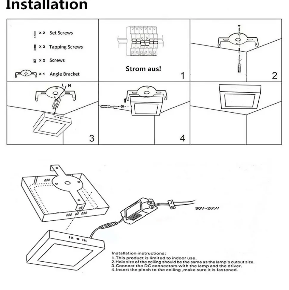 Température de couleur : Blanc Chaud 3000KPuissance consommée : 24WFlux lumineux : 1900 LumensDiamètre du spot : 300×300 mmCouleur du produit (y compris le cadre) : BlancIndice de protection : IP 20Garantie fabricant : 2 ans