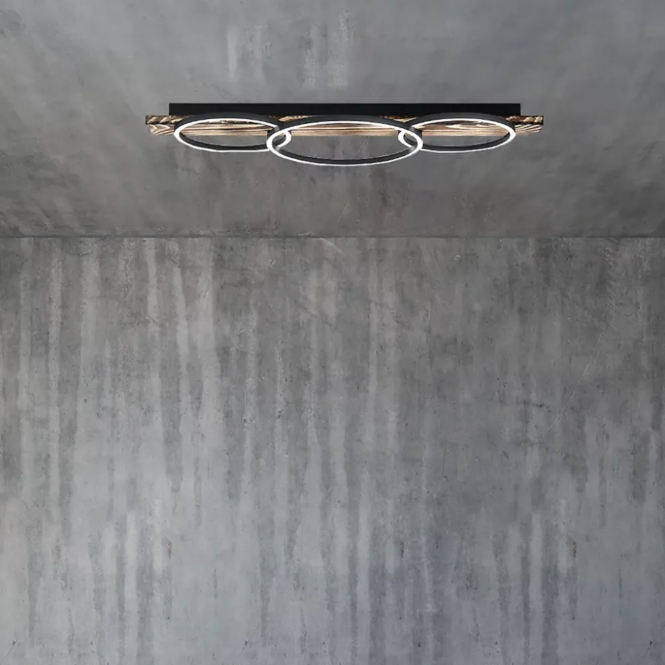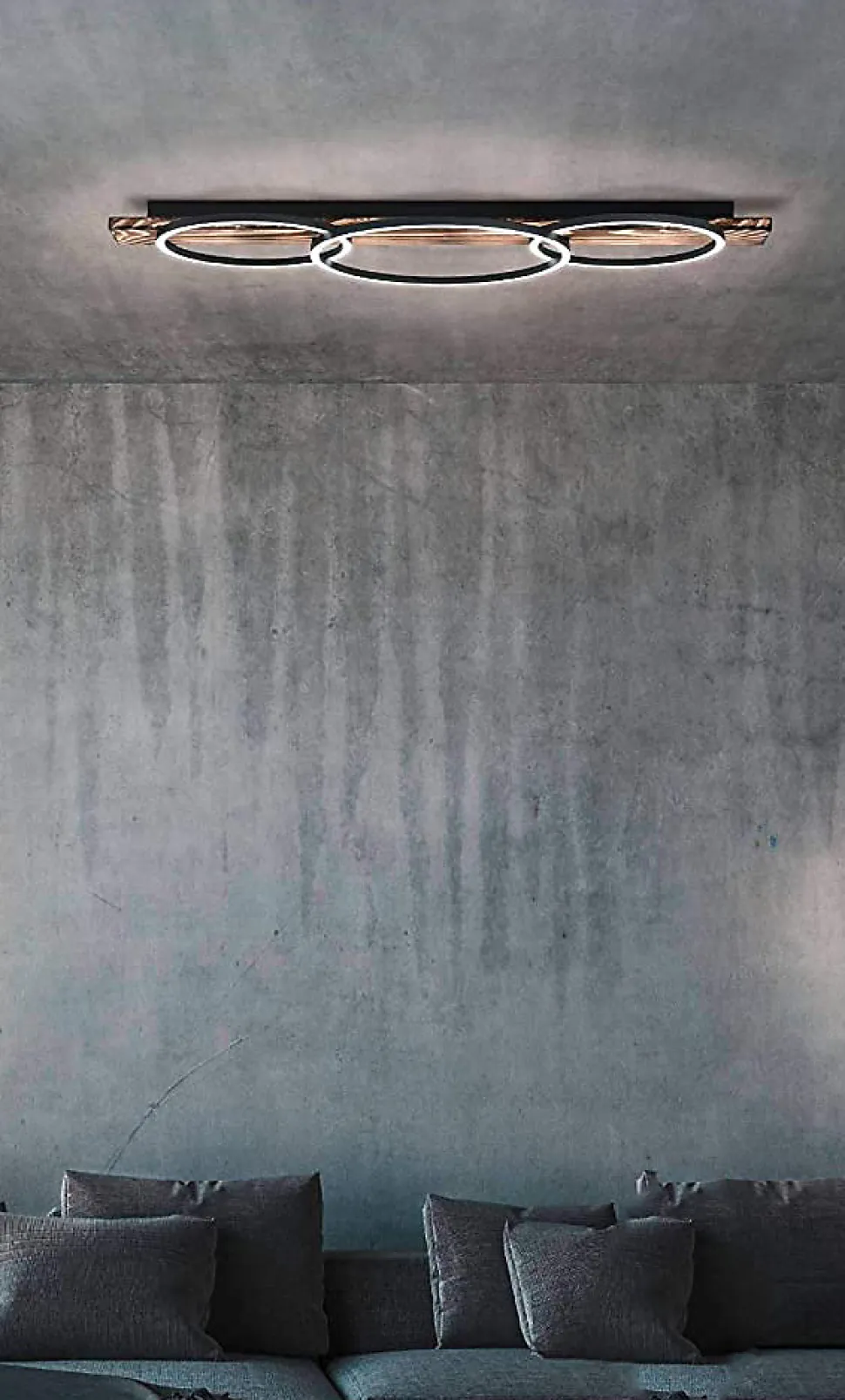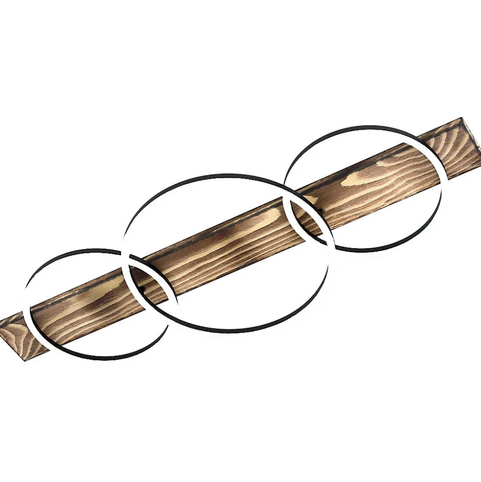 - Plafonnier en bois foncé avec cercle lumineux LED