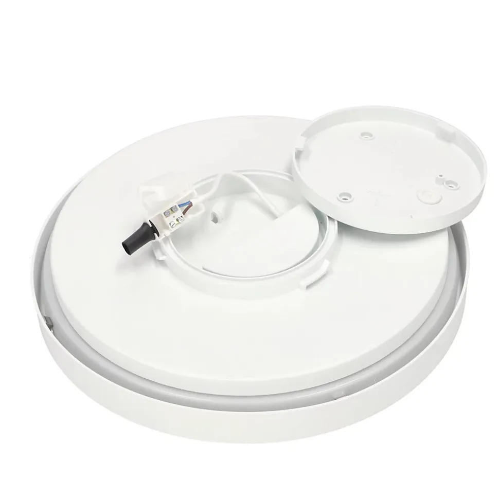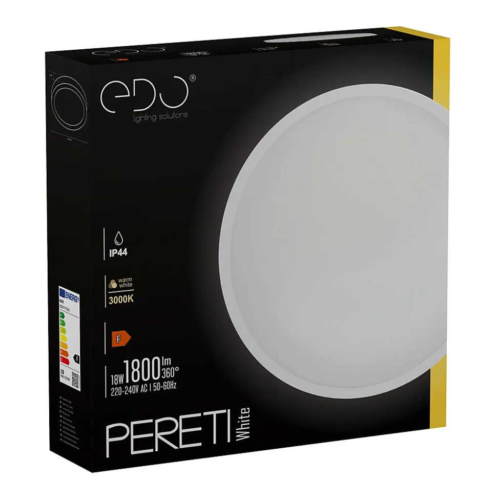 Plafonnier PERETI LED 18W anneau blanc 29,5cm, 3000K lumière chaude, 1800lm, IP44, 220-240V EDO777610 EDO SolutionsLes plafonniers PERETI sont des sources d’éclairage modernes et minimalistes, caractérisées par une forme simple et circulaire.✅ INSTALLATION FACILE – le luminaire est conçu pour être fixé au plafond à l’aide de vis, permettant une installation rapide et aisée (tous les éléments nécessaires sont inclus dans l’ensemble).✅ COULEURS VARIÉES – la lampe est disponible avec trois couleurs d’anneau.✅ DURABILITÉ – les éléments en aluminium sont légers, solides et résistants.✅ LUMIÈRE chaude – 3000K.✅ RÉSISTANCE ACCRUE – indice de protection IP44 garantissant l’étanchéité et la résistance à l’humidité.Spécifications techniques✔️ IP : IP44✔️ Puissance : 18 W✔️ Tension nominale [V] : 220-240 V✔️ Fréquence nominale [Hz] : 50 Hz✔️ Couleur de la lumière : blanc chaud✔️ Température de couleur [K] : 3000K✔️ Changement de couleur de la lumière : non✔️ Flux lumineux utile [lm] : 1800lm✔️ Durée de vie nominale [h] : 25000h✔️ Nombre de cycles marche/arrêt : 15000✔️ Type de raccordement : vis à six pans creux✔️ Couleur : anneau blanc✔️ Matériau : boîtier et cache – PVC✔️ Cache : mat✔️ Source lumineuse remplaçable : non✔️ Compatibilité avec un variateur : nonDimensions [mm] : ✔️ largeur : Φ295 mm✔️ longueur : ✔️ hauteur : 55 mm