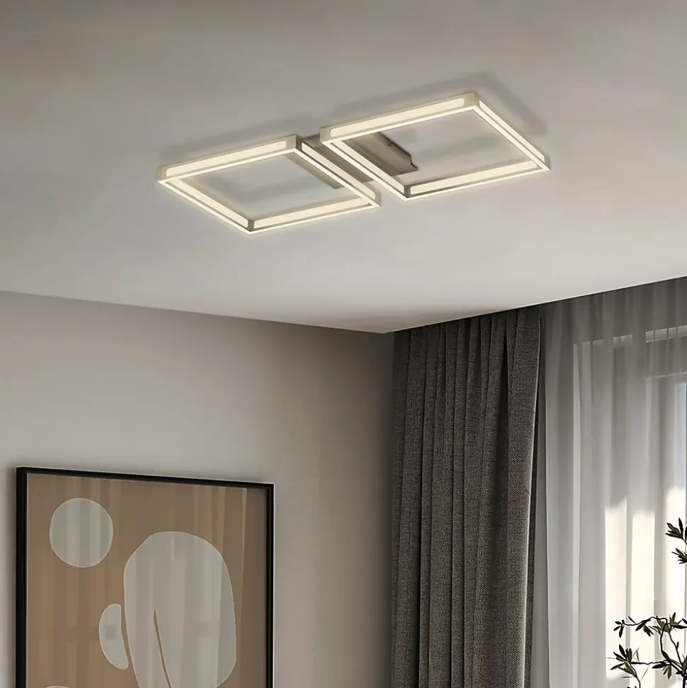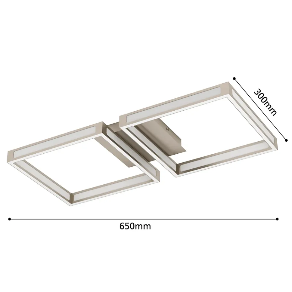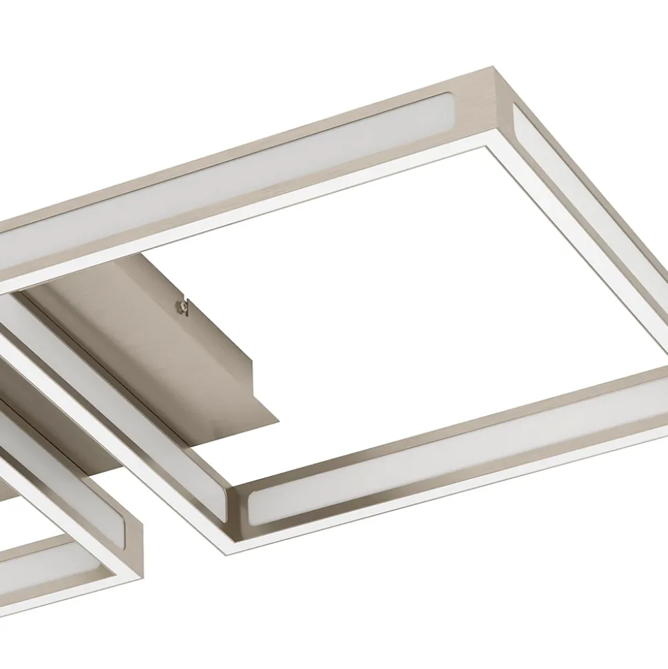 - Le plafonnier ALTAFLOR est parfait pour illuminer votre intérieur moderne. Sa couleur nickel mat se place facilement dans tous types de décoration. Les LED intégrées diffusent une lumière blanc chaud agréable. Ce plafonnier ne se contente pas d’éclairer vers le bas, il diffuse aussi la lumière de façon indirecte grâce aux LED placées à l’intérieur des cadres. Il crée alors une vraie ambiance lumineuse, parfaite pour toutes les pièces.