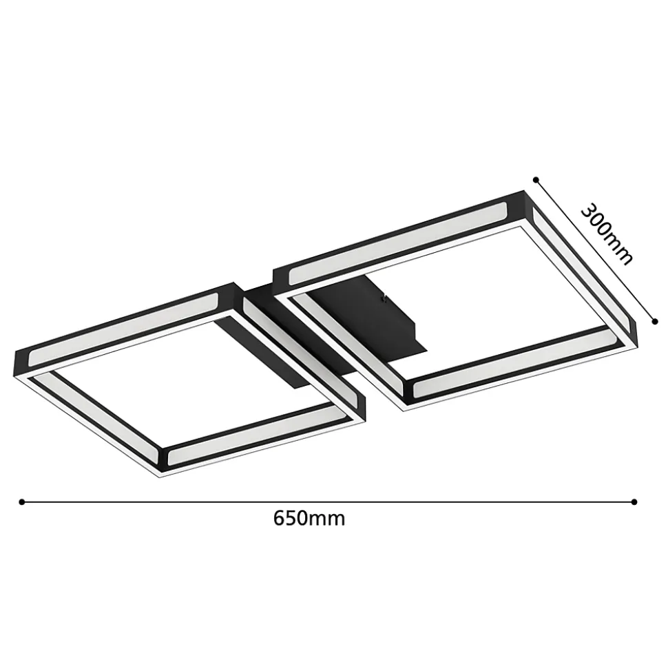 Le plafonnier à LED ALTAFLOR se compose de deux cadres en métal carré noir avec élément d’éclairage intégré. Les LED placées sous les éléments en plastique blancs diffusent une agréable lumière blanc chaud. Grâce à ce design unique, la lumière ne se diffuse pas uniquement de manière indirecte, à l’intérieur et à l’extérieur des cadres en métal, mais exactement directement vers le bas dans la pièce. Ce plafonnier au style minimaliste offre un éclairage moderne et agréable dans n’importe quelle pièce, de la cuisine à la chambre en passant par le salon ou le couloir.