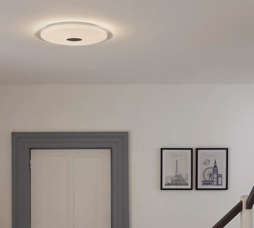 Plafonnier LED intégrée dimmable 2400lm 24W blanc chaud et blanc neutre GoodHome Angoon blanc H.4.9 x Ø40 cm