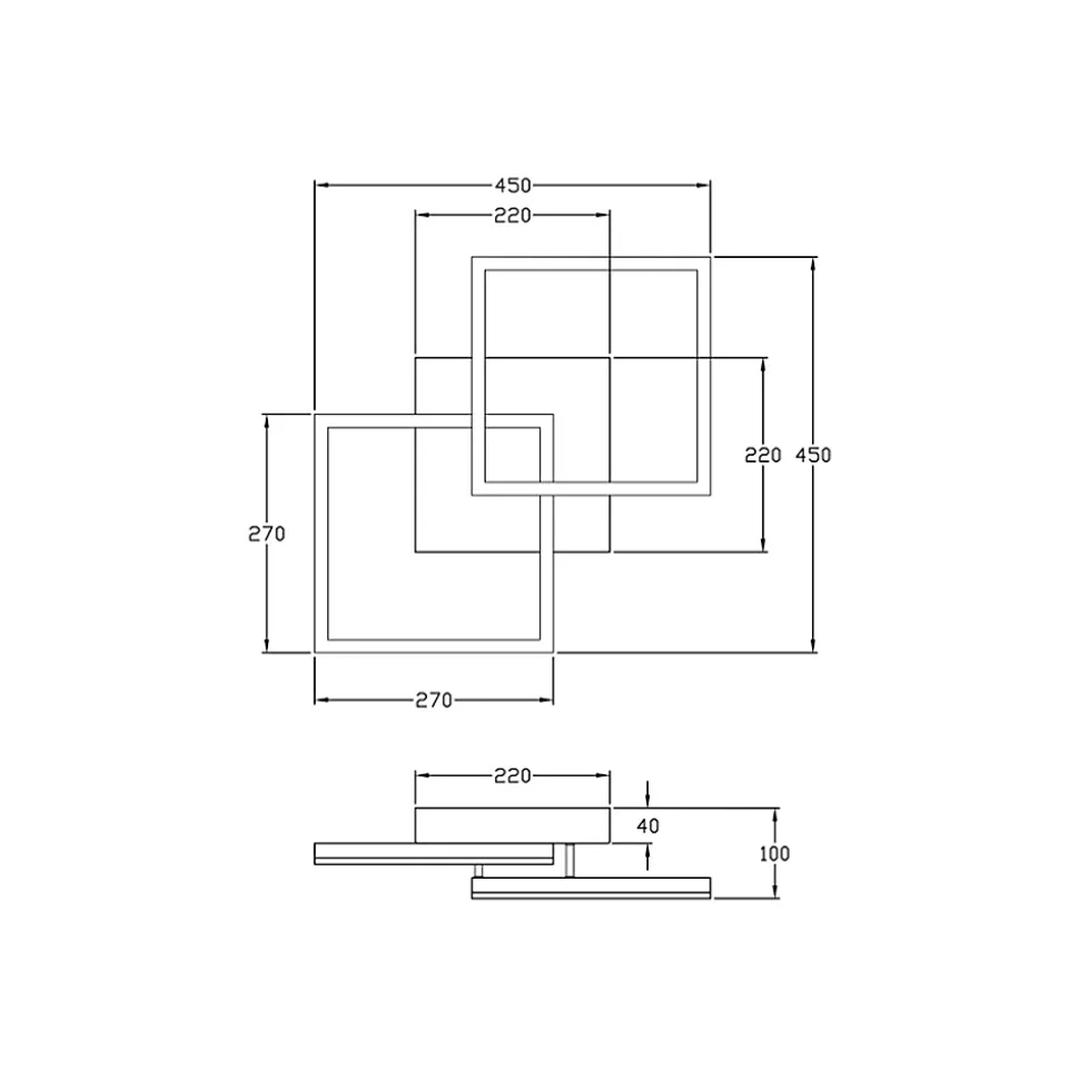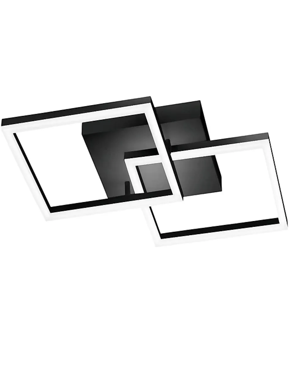 Plafonnier LED Bard moderne composé d’une structure carrée en métal noir et d’un diffuseur design en méthacrylate de 39 Watts.Plafonnier LED moderne dimmable, ce plafonnier a la possibilité de faire varier l’intensité de la lumière avec un variateur à coupure de phase non inclus. Plafonnier LED composé de deux caissons lumineux entrelacés. Très recherché pour sa luminosité. Idéal pour une installation dans des maisons modernes dans des pièces telles que les salons, les cuisines, les chambres, les couloirs ou les salles de bains. Plafonnier LED au design moderne très apprécié des architectes d’intérieur, architectes et aménageurs, il est très lumineux. Plafonnier LED parfait pour décorer les studios professionnels, les bureaux, les magasins ou les showrooms. La lampe noire s’adapte à tous les environnements, préfère les environnements modernes.Plafonnier LED avec indice de protection IP20, ne peut donc être utilisé qu’à l’intérieur. Plafonnier LED disponible uniquement dans des tons de lumière chaude (3000K).Dimensions du plafonnier 45×45 cm et hauteur 11cm. Flux lumineux de 3880 lumens