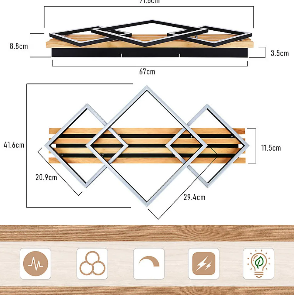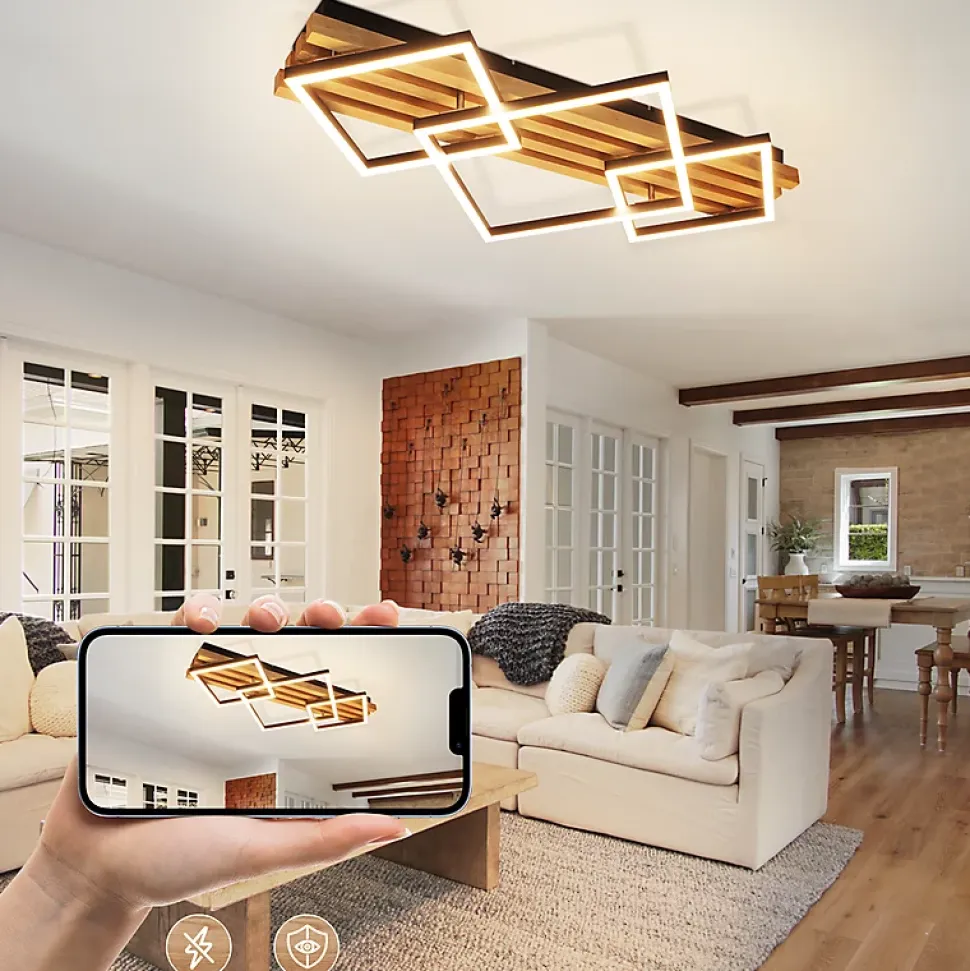 Design géométrique simple : Ce luminaire de salon LED moderne est composé d’une base en bois et d’une base en fer noir. Des matériaux de haute qualité et durables garantissent longévité et durabilité.Plafonnier basse consommation : Le plafonnier en bois Gbly a une puissance de 36 W et un diamètre de lampe de 55 cm. Il diffuse une lumière ultra-lumineuse et couvre une surface de 15 à 30 m². Comparé aux lampes classiques, il vous permet d’économiser plus de 90 % sur vos factures d’énergie.Variation d’intensité : Le plafonnier de chambre Gbly est télécommandé. La température de couleur est réglable entre 3 000 K et 6 500 K. La luminosité est réglable entre 10 % et 100 %, vous permettant d’ajuster la lumière selon vos besoins. La fonction mémoire enregistre les réglages effectués depuis la dernière extinction.Agréable pour les yeux, sans scintillement : Ce plafonnier LED moderne en bois est résistant aux interférences haute fréquence. Grâce à l’abat-jour en matériau de haute qualité, la lumière est vive et uniforme, sans scintillement ni éblouissement. L’indice de rendu des couleurs du plafonnier LED est supérieur à 80, offrant une reproduction claire et éclatante des couleurs.Facile à utiliser : Installation rapide et facile. La télécommande intégrée vous permet de contrôler facilement l’éclairage. Convient à divers environnements tels que les salons, chambres, cuisines, bureaux, couloirs, restaurants, appartements, chambres d’hôtes, etc.