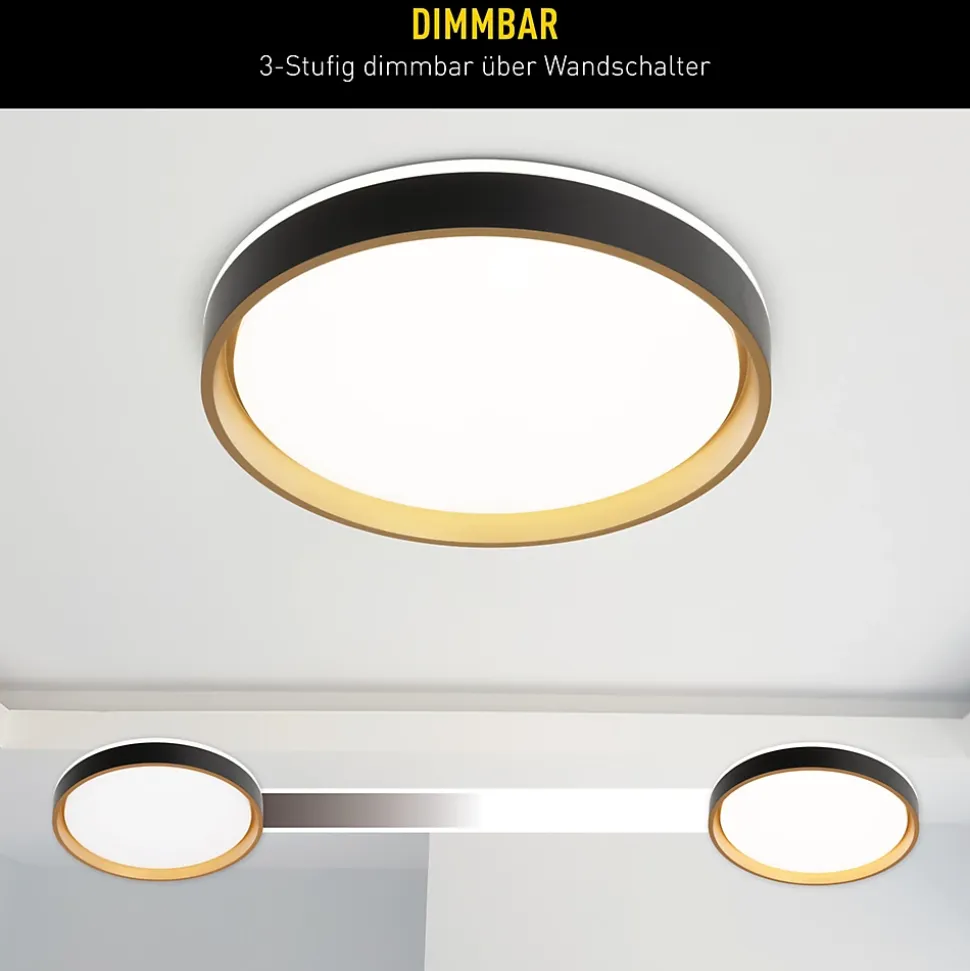 Le plafonnier TUNIS est un véritable bijou pour chaque pièce à vivre. Les plafonniers sont idéaux pour éclairer une pièce de manière homogène. Ils diffusent largement la lumière qui atteint chaque recoin de la pièce, créant ainsi une atmosphère lumineuse et agréable. Style moderne, design rond et aspect élégant, parfait pour tous ceux qui aiment l’élégance et la qualité ! Le luminaire noir et or est fabriqué en métal et en plastique et attire tous les regards dans n’importe quelle pièce. Le plafonnier mesure 39 cm de long, 39 cm de large/profondeur et 7,5 cm de haut. Le luminaire a donc un diamètre de 39 cm. Avec ce plafonnier équipé de 104 LED sur 1 carte LED, vous apportez de la lumière dans l’obscurité. L’ampoule est remplacée par un spécialiste si nécessaire. Ce luminaire correspond à la classe 1. Cet appareil est prévu pour fonctionner sur secteur et fonctionne avec une tension secteur de 220-240 V ~ 50 Hz. Le luminaire de 24 watts vous fournit 2400 lumens pour éclairer la pièce. La température de couleur de 4000 kelvins offre un éclairage fonctionnel et de qualité. Grâce à la fonction de variation d’intensité, la luminosité peut être adaptée aux besoins de chacun. Apportez une touche chaleureuse et accueillante à vos pièces avec notre plafonnier haut de gamme et découvrez l’éclairage sous sa plus belle forme.