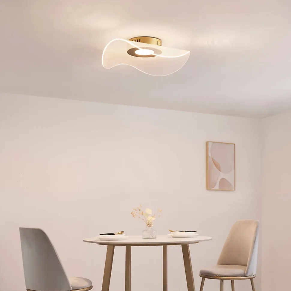 Ondenis est un plafonnier au design aérien qui apporte une touche raffinée à votre espace. Sa structure en aluminium, acier inoxydable et acrylique assure robustesse et légèreté, tandis que la finition dorée et le diffuseur transparent ajoutent une touche subtile d’élégance. Avec un diamètre de 48 cm, il s’adapte facilement à tout environnement. Équipé de LED intégrées de 24W pour un éclairage de 1000 lumens, ce modèle non dimmable, conforme à la norme IP20, combine style moderne et efficacité.) Assemblage simple requis (