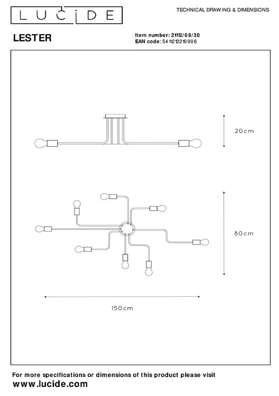 Huit tentacules légères, élégamment fixées à une plaque de montage minimaliste. Voici Lester : une lampe de plafond avec l’apparence d’une pieuvre et 8 bras fixes. Ce luminaire mesure 150 cm x 80 cm. Un accessoire de taille, donc. Le métal de haute qualité confère à Lester un look intemporel. Vous pourrez facilement connecter le luminaire à un interrupteur mural. Les points lumineux (ampoules non incluses) diffuseront la lumière dans toute la pièce, vous permettant ainsi de profiter d’une lueur agréable et ludique dans n’importe quelle pièce.Caractéristiques uniques:• Utilisable avec des sources lumineuses LED• Facile à connecter à un variateur (non fourni)• Fabriqué en métalPrincipales caractéristiques du produit:• Consommation énergétique: 8x40W / 230V / A intensité variable (Ampoules non incluses)• Dimensions: Lon.80 x Larg.150 x Haut.20 cm• 2 Ans garantie sur le luminaire / source de lumière appropriée est EAN: 5411212491060Pourquoi choisir l’éclairage Lucide?Lucide incarne un design innovant, un savoir-faire artisanal et une fiabilité exemplaire. En tant qu’entreprise familiale belge avec plus de trois décennies d’expertise, nous concevons des éclairages de haute qualité qui enrichissent et transforment chaque espace, tant intérieur qu’extérieur. Notre collection polyvalente comprend des luminaires durables et des sources lumineuses économes en énergie, soigneusement conçus par nos propres experts et fabriqués selon les normes CE les plus strictes. Grâce à notre large gamme, nous vous proposons toujours une solution d’éclairage adaptée, quel que soit le style ou l’espace. Ainsi, nous illuminons non seulement votre espace de vie mais aussi votre processus de choix dans la recherche d’un éclairage de qualité et abordable. Chez Lucide, nous combinons innovation et savoir-faire pour un éclairage qui ajoute non seulement de l’ambiance, mais transforme chaque maison en foyer.