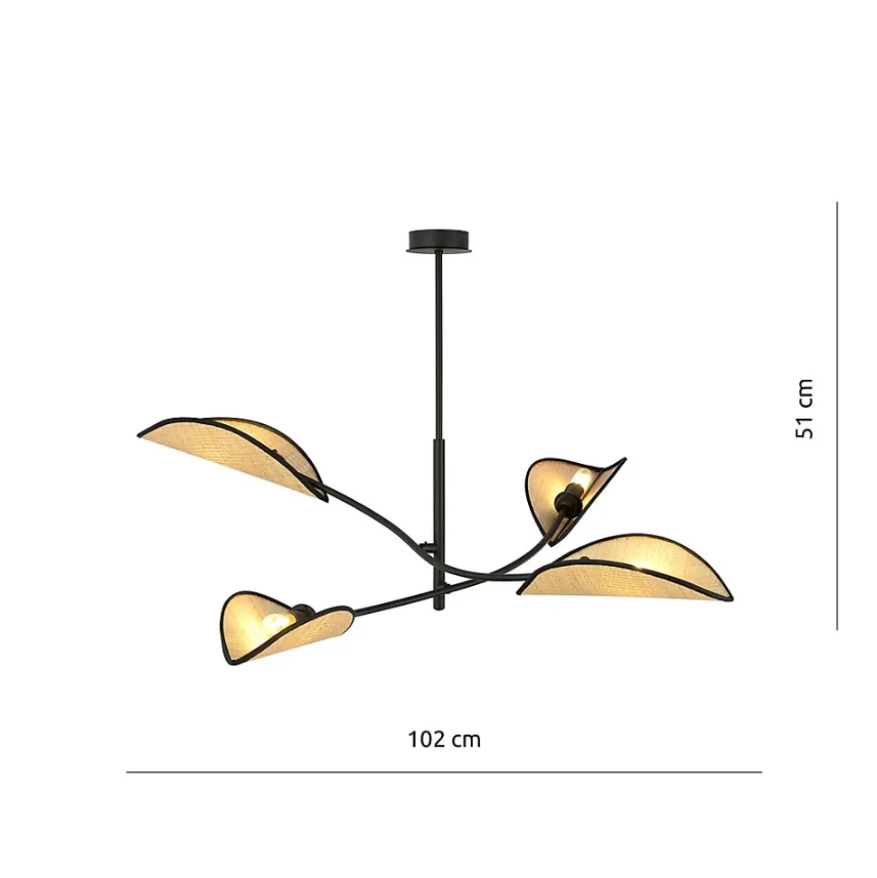 Le plafonnier LOTUS séduit par sa légèreté et sa subtilité. Il s’intègre parfaitement dans les intérieurs de ceux qui apprécient des matériaux uniques et un design original de style ethno. Les abat-jour exceptionnels en forme de feuilles confèrent à la lampe une délicatesse incomparable. Le plafonnier LOTUS apportera une touche de chaleur à votre intérieur, créant une atmosphère accueillante. Il trouve sa place idéale dans le salon ou la chambre et attirera à coup sûr l’attention de vos invités. Les abat-jour ouverts offrent un éclairage parfait, tout en créant une ambiance unique.