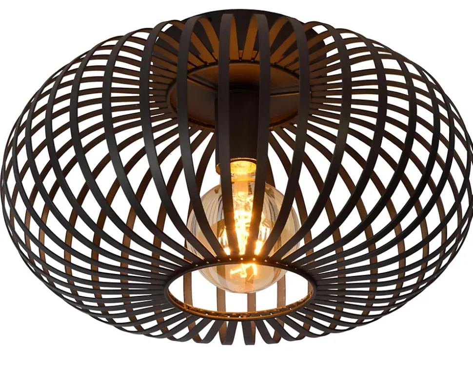 Une ampoule emprisonnée dans une cage métallique. Le plafonier Manuela sait comment être utile. Une petite nouvelle dans la gamme de Lucide, mais immédiatement un grand succès. Avec les ampoules visibles, Manuela répond intelligemment aux tendances intérieures contemporaines. Le plafonier a tout pour faire de votre maison un foyer chaleureux. Placez ce plafonnier au-dessus de votre table à manger, de votre cuisine ou de votre table basse et profitez immédiatement d’une merveilleuse ambiance. Manuela est facile à connecter à un gradateur de lumière et elle est également très belle.Caractéristiques uniques:• Utilisable avec une source lumineuse LED• Facile à connecter à un variateur (non fourni)• Fabriqué en métalPrincipales caractéristiques du produit:• Consommation énergétique: 1x60W / 230V / A intensité variable (Ampoule non incluse)• Dimensions: Ø39,5 cm Haut.23 cm• 2 Ans garantie sur le luminaire / source de lumière appropriée est EAN: 5411212491046Pourquoi choisir l’éclairage Lucide?Lucide incarne un design innovant, un savoir-faire artisanal et une fiabilité exemplaire. En tant qu’entreprise familiale belge avec plus de trois décennies d’expertise, nous concevons des éclairages de haute qualité qui enrichissent et transforment chaque espace, tant intérieur qu’extérieur. Notre collection polyvalente comprend des luminaires durables et des sources lumineuses économes en énergie, soigneusement conçus par nos propres experts et fabriqués selon les normes CE les plus strictes. Grâce à notre large gamme, nous vous proposons toujours une solution d’éclairage adaptée, quel que soit le style ou l’espace. Ainsi, nous illuminons non seulement votre espace de vie mais aussi votre processus de choix dans la recherche d’un éclairage de qualité et abordable. Chez Lucide, nous combinons innovation et savoir-faire pour un éclairage qui ajoute non seulement de l’ambiance, mais transforme chaque mais…