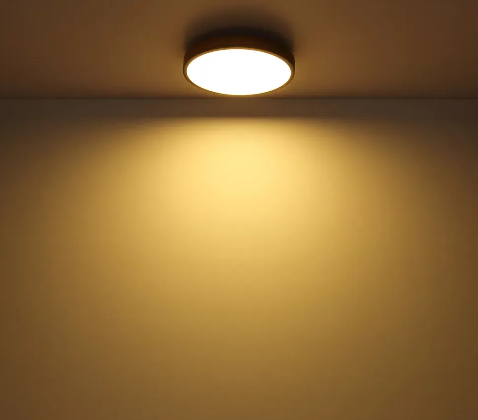 Plafonnier métal graphite, MDF décor bois foncé, plastique opale, ø: 300mm, H: 85mm, incl. LED 12W 230V, 1600lm Source, 950lm Output, 3000K