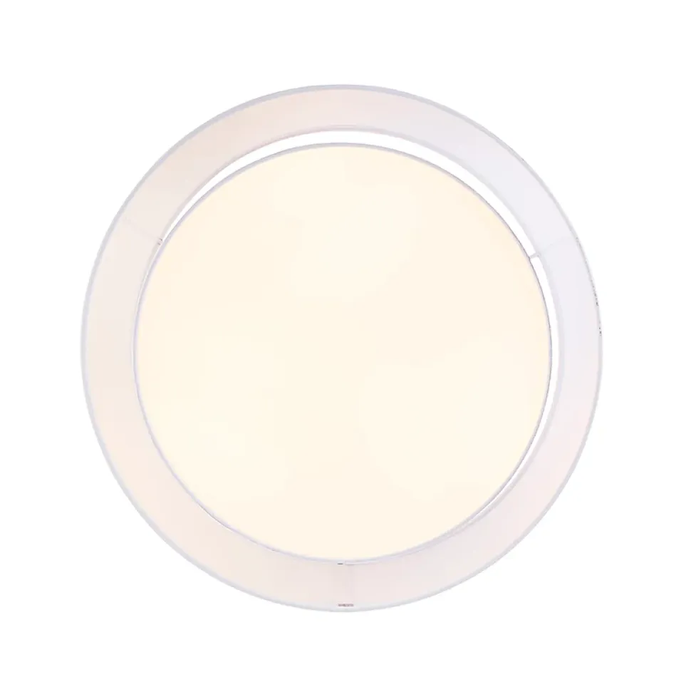 Comme son nom l’indique, le Drum Duo est une lampe dotée d’un double abat-jour. Les abat-jours intérieur et extérieur sont blancs, l’abat-jour extérieur étant translucide, ce qui ajoute une dimension supplémentaire à la lampe. L’abat-jour intérieur étant fermé par une plaque en plastique opale, la lumière est atténuée, créant ainsi une ambiance lumineuse agréable. Le Drum Duo est composé de tissu, d’acier et de plastique. Son diamètre est de 50 cm et sa hauteur de 32 cm. La plaque de montage mesure 12 cm de diamètre et 2,5 cm d’épaisseur. Vous pouvez compléter le plafonnier avec 3 ampoules à culot E14 d’une puissance maximale de 40 W. N’oubliez pas de les commander séparément. La luminosité peut être atténuée à l’aide d’un variateur externe (non inclus). Le Drum Duo est un magnifique plafonnier pour l’entrée, le salon ou la chambre à coucher. Créez une ambiance chaleureuse dans votre intérieur avec le Drum Duo.