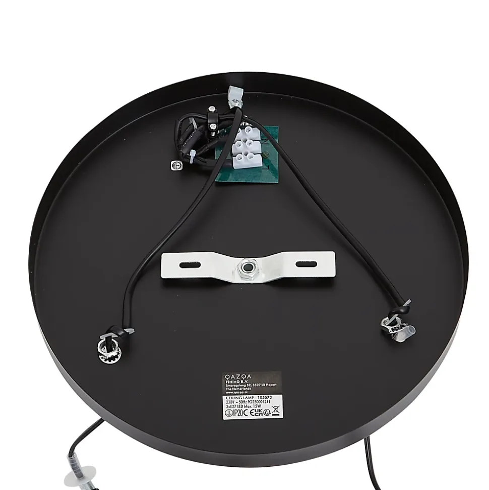 Simple, mais atmosphérique : voici ce plafonnier moderne en acier noir. Le plus de Facil ? Vous pouvez toujours y ajouter votre touche personnelle avec les trois ampoules. Vous devrez les ajouter vous-même, n’oubliez donc pas de commander les ampoules à culot E27 d’une puissance maximale de 60 watts. Le plafonnier est également dimmable (variateur non inclus). Facil a un diamètre de 30 centimètres et une hauteur de 34,5 centimètres. La plaque de montage a un diamètre de 30 centimètres et une hauteur de 2 centimètres. Ce plafonnier ajoutera de l’ambiance à votre intérieur !