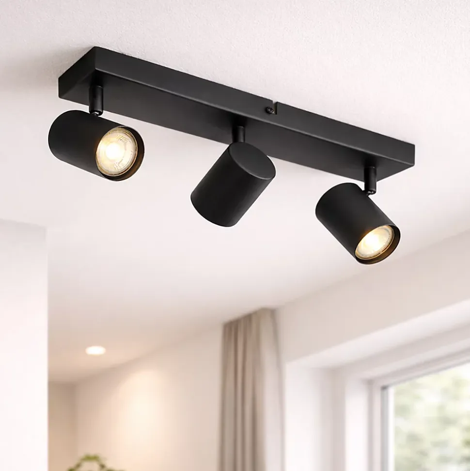 Moins, c’est plus. Jeana le prouve une fois de plus. Ce plafonnier simple est très moderne grâce à son design épuré. Il est en acier et fini en noir. Jeana a une hauteur de 14,5 cm, une longueur de 43 cm et une largeur de 8 cm. La plaque de montage a une hauteur de 2,5 cm, une longueur de 35 cm et une largeur de 8 cm. Les abat-jour ont chacun un diamètre de 5,5 cm et une hauteur de 8 cm. Vous pouvez compléter le plafonnier avec 3 sources lumineuses, chacune avec un culot GU10 (max. 10 Watt). N’oubliez pas de les commander séparément. Jeana est dimmable avec un variateur externe (non inclus). Complétez votre intérieur avec le plafonnier Jeana.