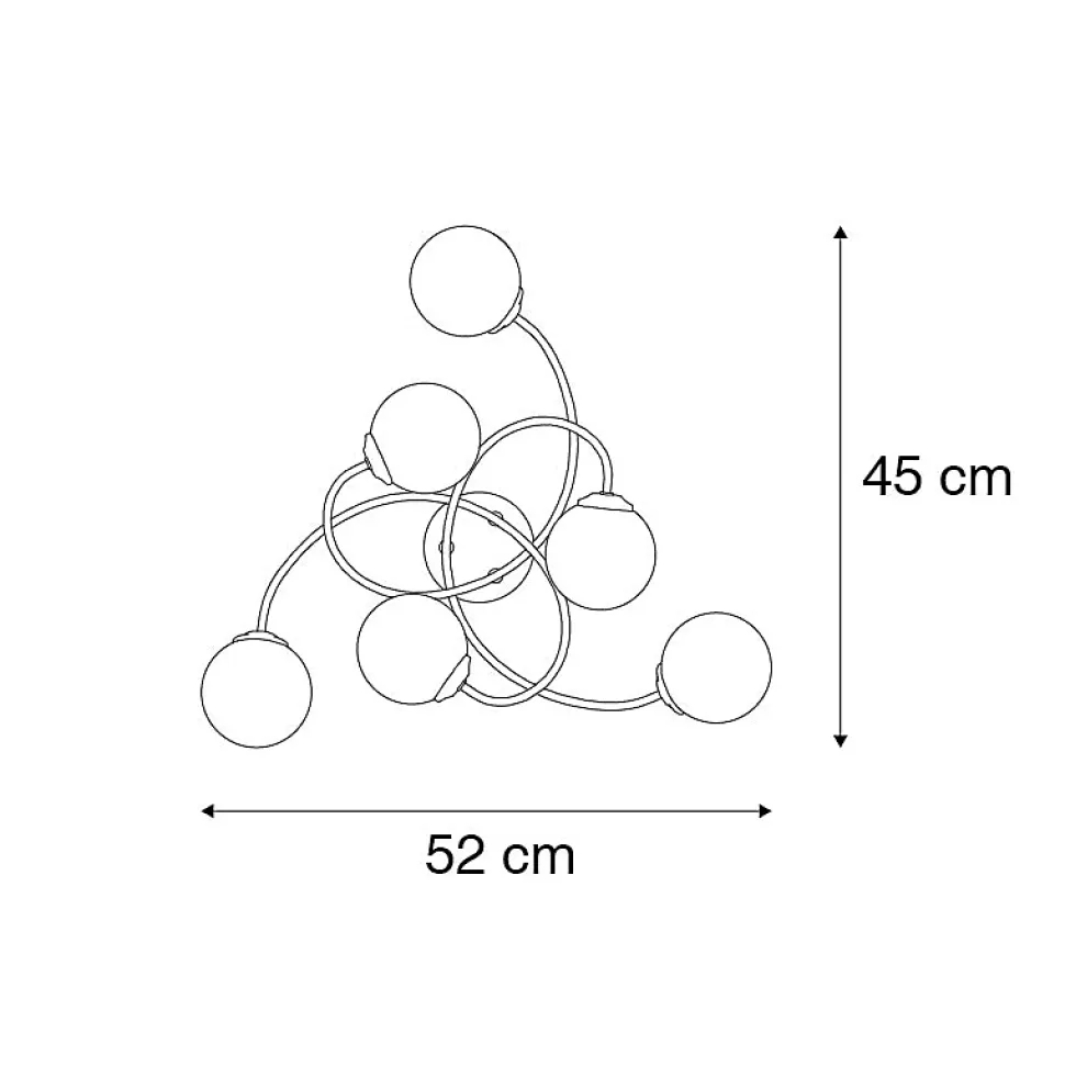 Avec son design unique, le plafonnier Athènes attire immédiatement le regard dans n’importe quelle pièce. Fabriqué en acier noir et verre fumé, il arbore un look moderne et mystérieux. Athènes mesure 18 cm de haut, 45 cm de large et 52 cm de long. La plaque de montage a un diamètre de 10 cm et une épaisseur de 2,5 cm. Les abat-jour en verre fumé ont chacun un diamètre de 10 cm. Athènes est complété par six ampoules, chacune avec un culot G9 (28W maximum). N’oubliez pas de les commander séparément ! Le plafonnier peut être connecté à un variateur externe pour créer une ambiance encore plus chaleureuse. Il n’est toutefois pas inclus. Un plafonnier moderne comme Athènes apportera la touche finale à votre intérieur. Parfait pour le salon, la chambre à coucher ou le bureau. Un ajout élégant à votre espace !