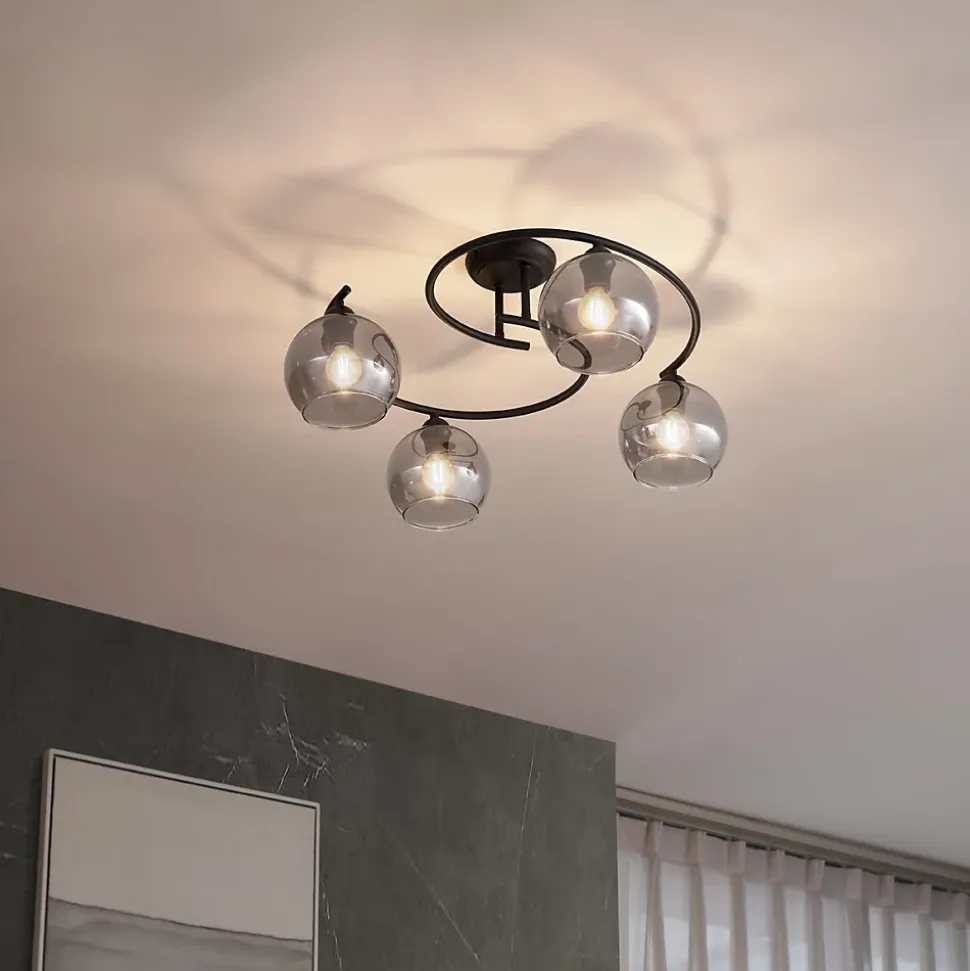 Donnez à votre intérieur un look raffiné et moderne avec le plafonnier Alanis. Cette élégante lampe à 4 lumières noire avec des sphères en verre fumé ajoute une touche de luxe à n’importe quelle pièce. Son design gracieux et spiralé crée un look dynamique et un magnifique jeu de lumière sur votre plafond. L’Alanis est parfaite pour le salon, la salle à manger ou la chambre à coucher, où elle offre à la fois fonctionnalité et ambiance. Combinez-la avec des ampoules à filament décoratives pour une lueur chaleureuse et accueillante qui donnera vie à votre intérieur. Apportez style et élégance à votre plafond – commandez le plafonnier Alanis et faites de votre maison un chez-vous !