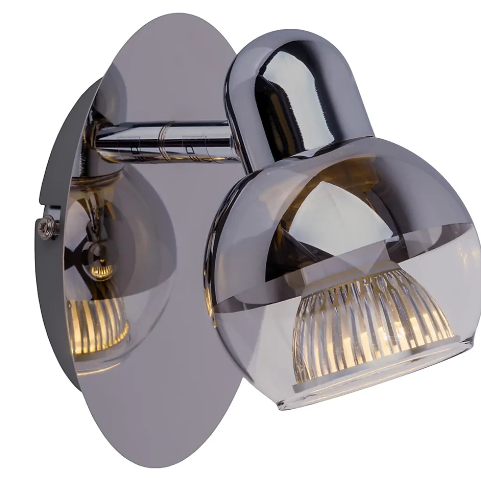 Donnez à votre intérieur ce petit quelque chose en plus avec le spot BOCCIA. L’éclairage ciblé du spot permet de mettre habilement en scène des zones ou des objets définis et d’obtenir un effet impressionnant. Son aspect élégant et sa forme sphérique font de ce luminaire de style rétro un élément indispensable pour tous ceux qui apprécient un intérieur harmonieux. Le luminaire en métal et en verre chromé attire le regard dans chaque pièce. La structure chromée et l’abat-jour clair et transparent se fondent en un ensemble harmonieux. Le spot mesure 14 cm de long, 13,5 cm de large et 8 cm de haut. Créez avec lui un éclairage élégant pour votre maison. Un culot GU10, équipé d’une ampoule adaptée, éclaire chaque pièce de manière idéale. Vous pouvez changer vous-même l’ampoule. Ce luminaire correspond à la classe 1 Une tension de réseau de 220-240V ~ 50Hz est nécessaire pour le fonctionnement sur secteur de cet appareil. Éclairez vos pièces de vie avec ce luminaire de 6 watts puissants, qui fournit 280 lumens et une température de lumière de 2800 kelvins. Nos spots de haute qualité assurent une ambiance lumineuse optimale et confèrent à votre maison confort et style dans chaque pièce.