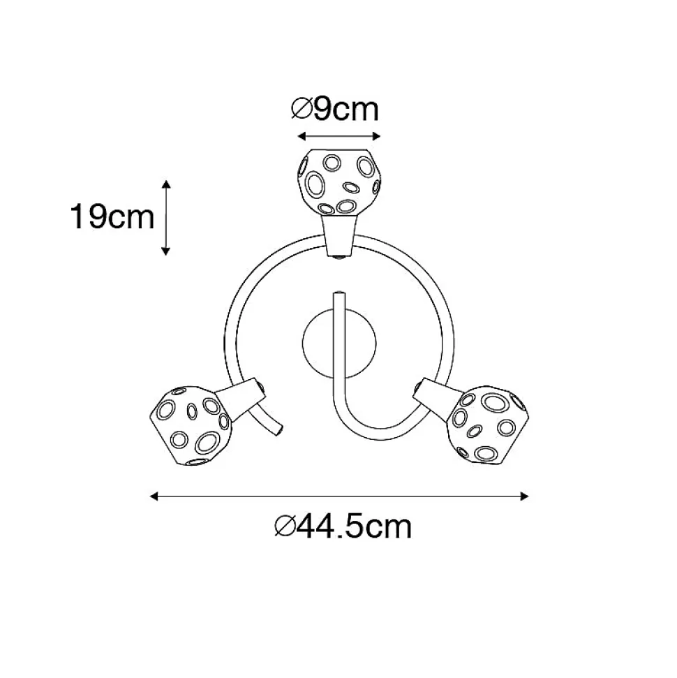 Adoptez le style Art déco avec notre luminaire Vidro. Fabriqué en acier et doté d’une finition dorée, il est agrémenté d’abat-jour en verre fumé qui créent un bel effet lumineux dans la pièce ! Le plafonnier a un diamètre de 44,5 cm et une hauteur de 19 cm. La plaque de montage a un diamètre de 8 cm. Le luminaire est livré sans ampoules. N’oubliez pas de commander trois ampoules E14 (25W maximum) avec celui-ci. L’effet verre fumé crée une ambiance particulière, mais si vous souhaitez la rendre encore plus intense, vous pouvez connecter le luminaire à un variateur d’intensité, qui n’est toutefois pas inclus. Le luminaire Vidro trouvera parfaitement sa place dans n’importe quelle pièce. Il est également un véritable atout de style dans un bureau !