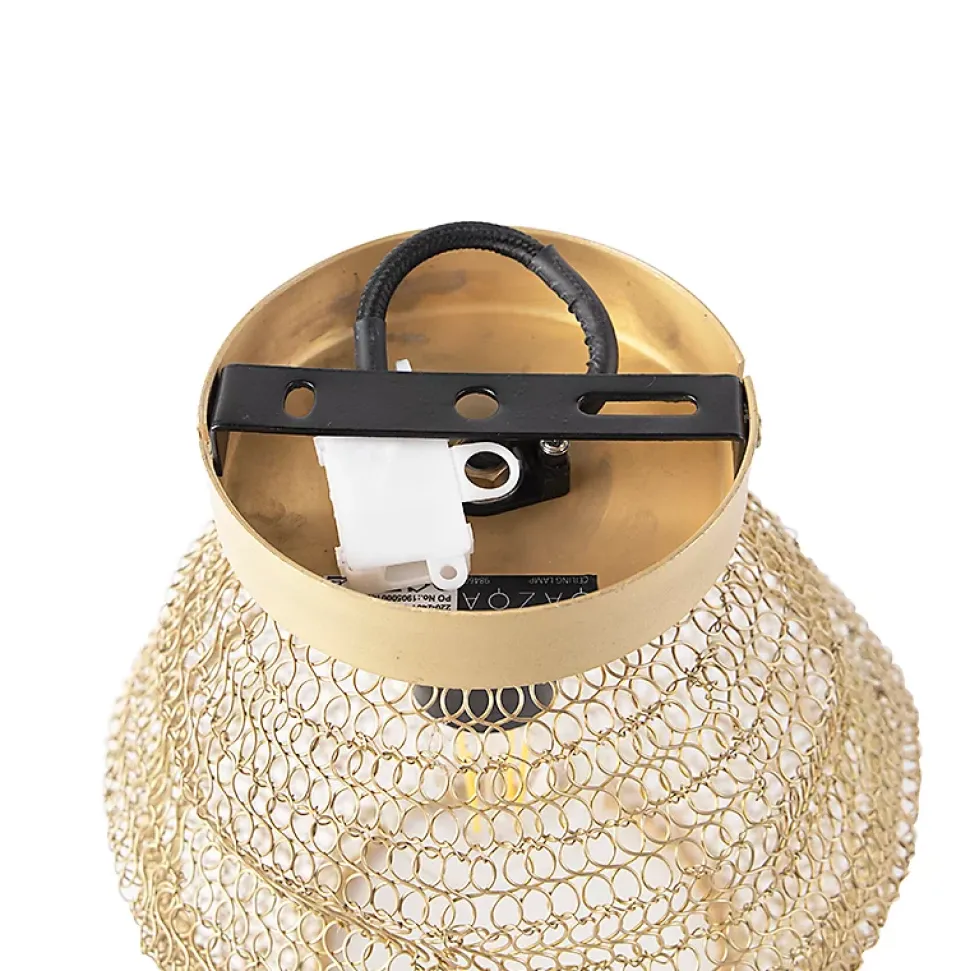 Notre Nidum Bene est une lampe qui donnera à votre intérieur une ambiance orientale ! Elle est finie avec des fils métalliques dorés, ce qui permet à l’ampoule d’être clairement visible. Elle crée un bel effet au plafond. Il est donc préférable de choisir une ampoule décorative ! Elle doit avoir un culot E27 (25W maximum). Ce plafonnier sera du plus bel effet dans le salon ou dans le couloir. Votre chambre à coucher aura également une touche orientale avec ce Nidum. L’abat-jour a un diamètre de 20 cm, le plafonnier une hauteur de 22 cm. La plaque de montage pour le plafond a un diamètre de 12 cm. La luminosité de la lampe peut également être atténuée à l’aide d’un variateur externe. Complétez votre intérieur avec ce plafonnier oriental ! Le Nidum est fait à la main, la forme de l’abat-jour peut donc différer de celle de la photo ! À noter : cette lampe est livrée dans une petite boîte, vous devrez donc retirer l’abat-jour vous-même. Et ensuite : assemblez-la et profitez-en !