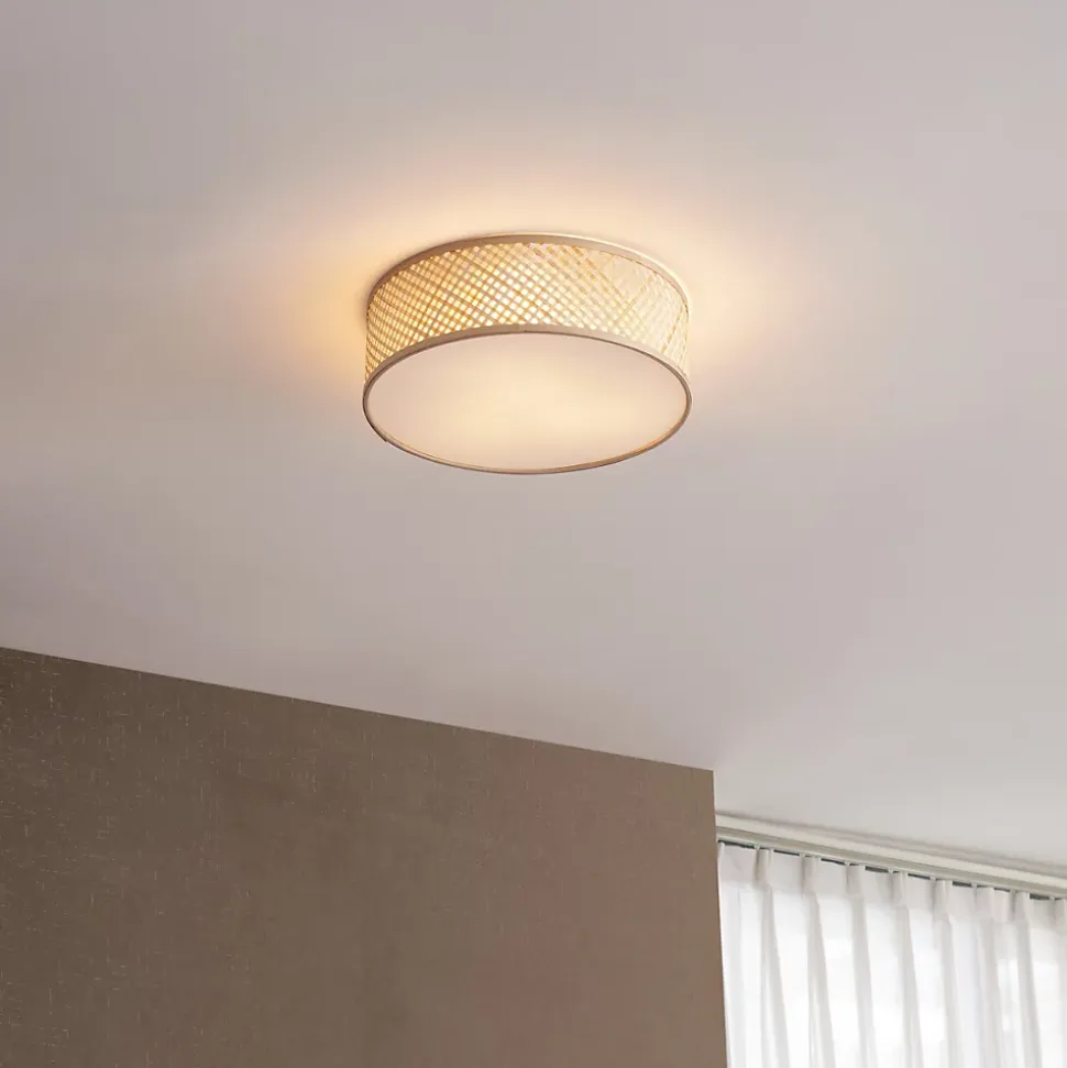 Apportez chaleur naturelle et ambiance orientale stylée à votre intérieur avec le plafonnier Tremmo ! Avec son diamètre généreux de 40 cm et son magnifique design en bambou tressé dans une teinte naturelle, ce luminaire est un véritable accroche-regard. Le motif ajouré crée un jeu de lumière atmosphérique, tandis que le diffuseur situé en bas assure un éclairage doux et uniforme.Le plafonnier Tremmo est parfait pour les grandes pièces telles que le salon, la salle à manger ou la chambre à coucher. Grâce à son design intemporel, ce luminaire s’intègre sans effort dans divers styles d’intérieur, du bohème au scandinave. L’utilisation du bambou ajoute une touche durable et apaisante à votre intérieur, donnant à votre maison plus d’ambiance et de caractère.Laissez-vous inspirer par le charme unique du plafonnier Tremmo. Commandez dès aujourd’hui et profitez d’une solution d’éclairage naturelle et tendance !